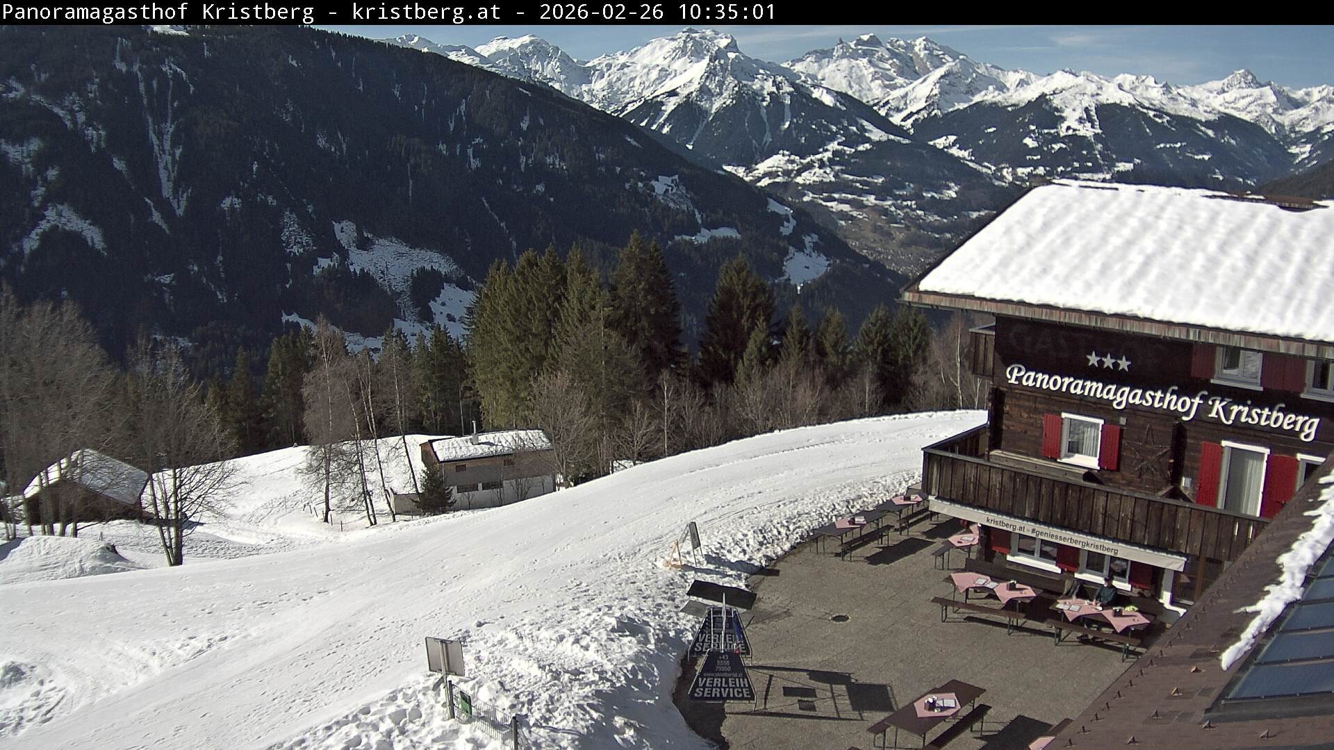 Archived webcam image showing Mountain Restaurant Kristberg on 26 Feb 2026 at 10:37 09:00