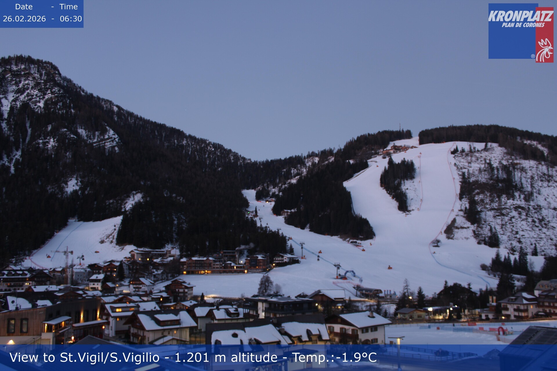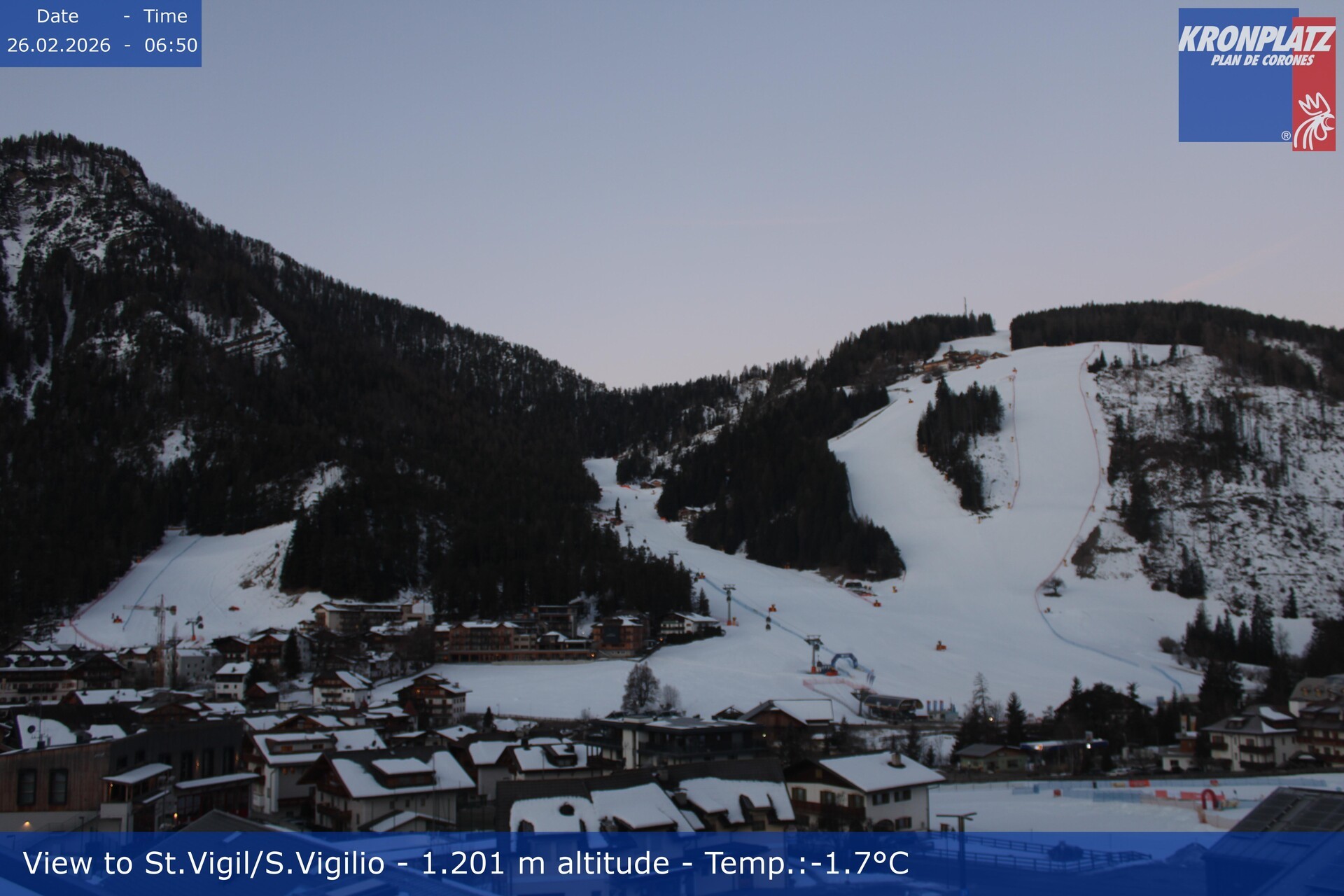 Archiviertes Webcam Bild: St. Vigil am Kronplatz - Weltcupstrecke am 26 Feb 2026 um 07:36 Uhr 06:00