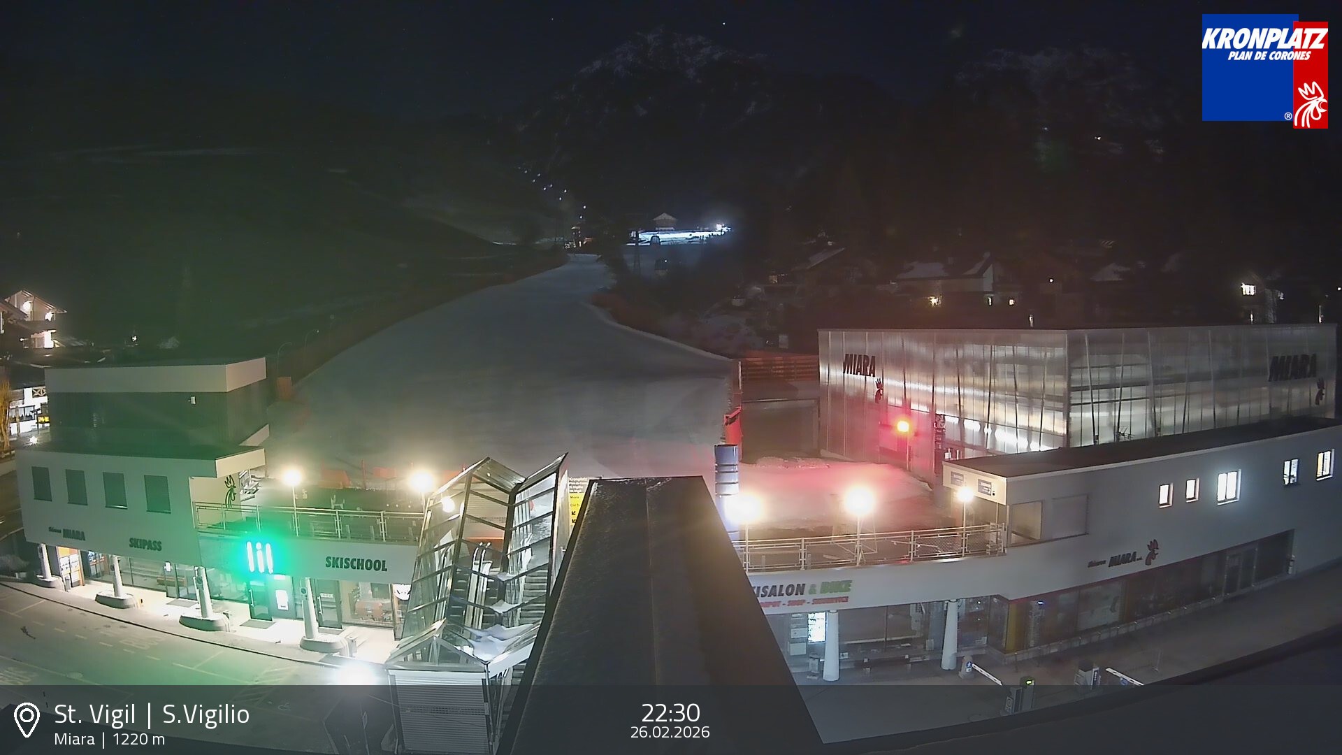 Archiviertes Webcam Bild: Kronplatz: Talstation Miara am 26 Feb 2026 um 22:41 Uhr Aktuell
