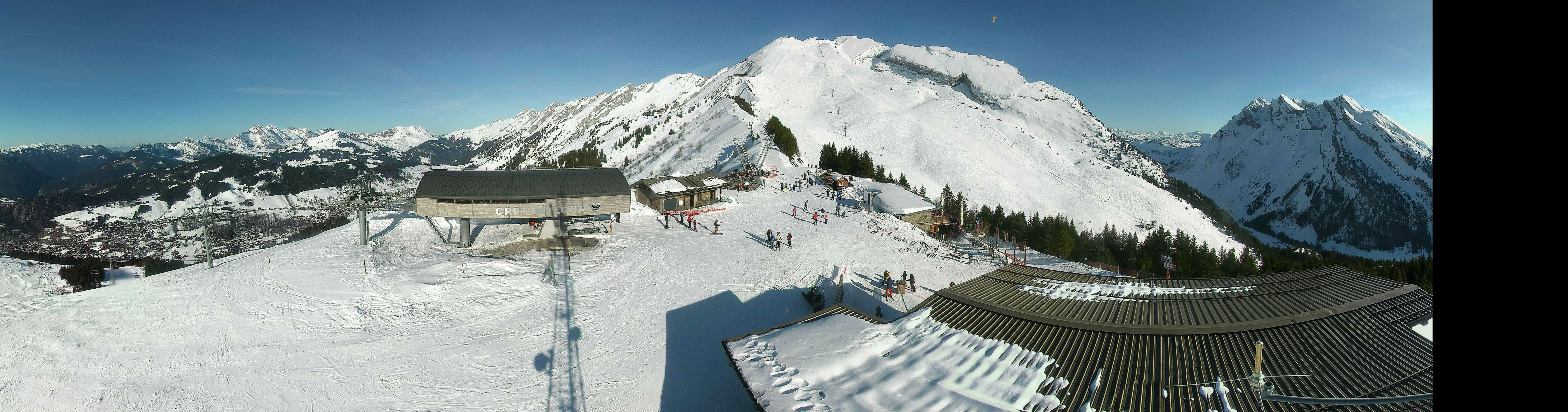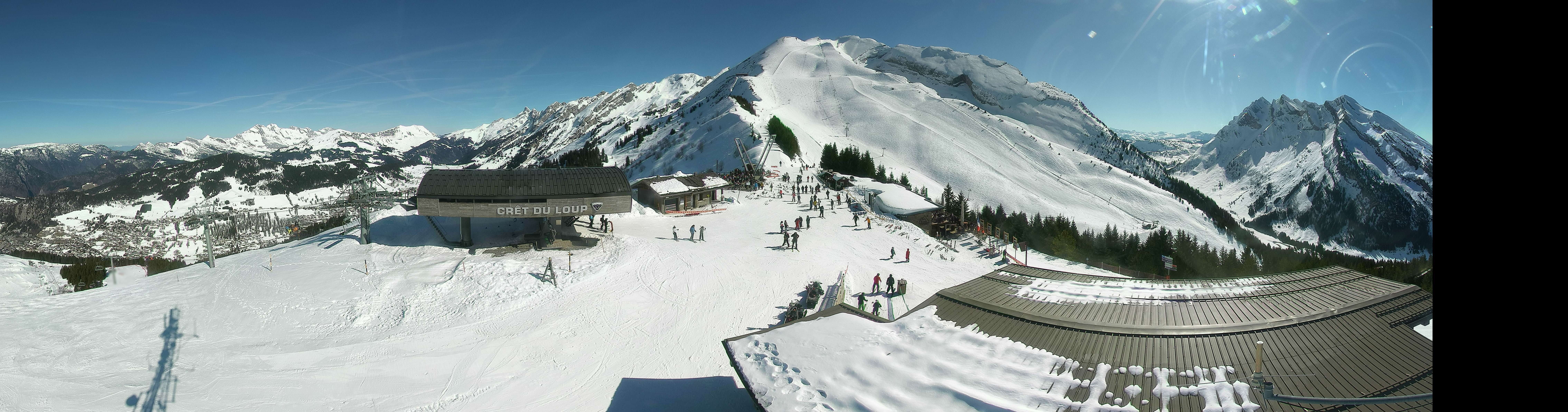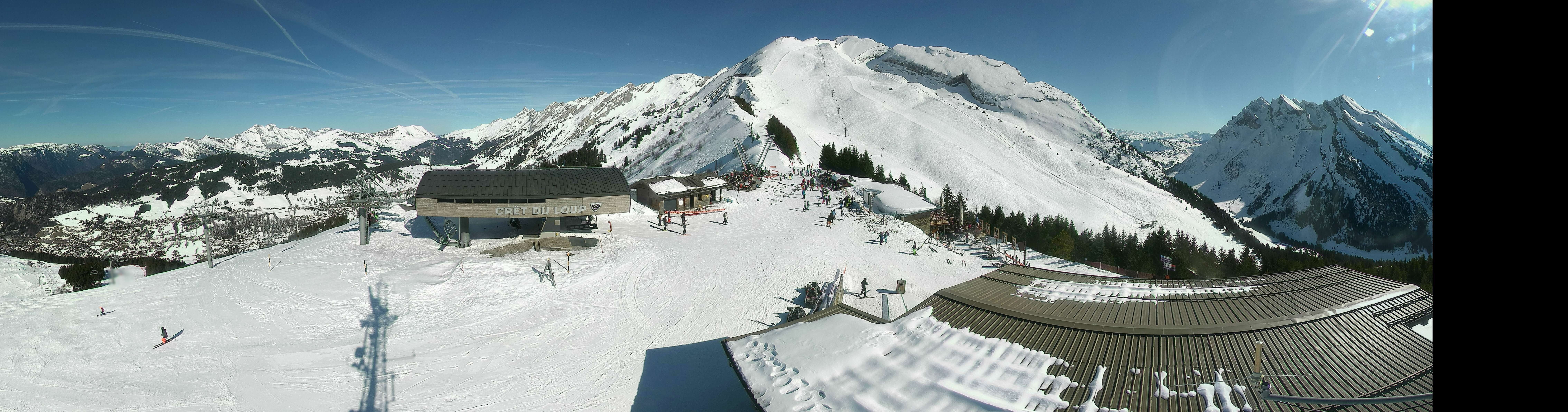 Die Webcam eröffnet dir die Sicht auf die Bergstation Crêt du Loup und die umgliegende Berglandschaft im französischen Skigebiet La Clusaz.