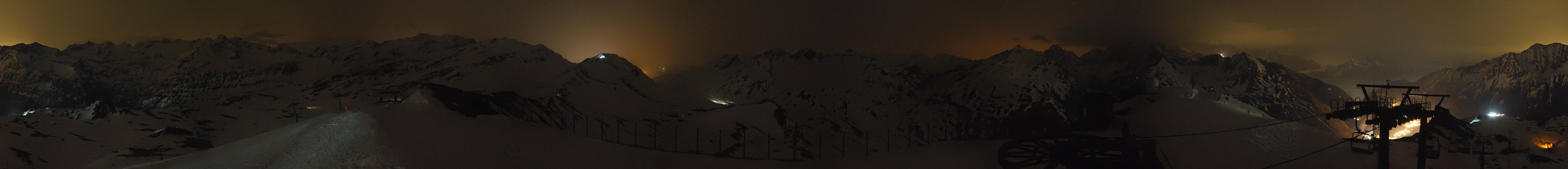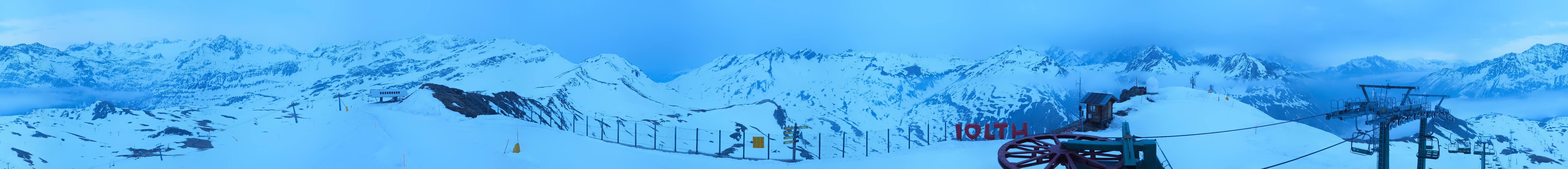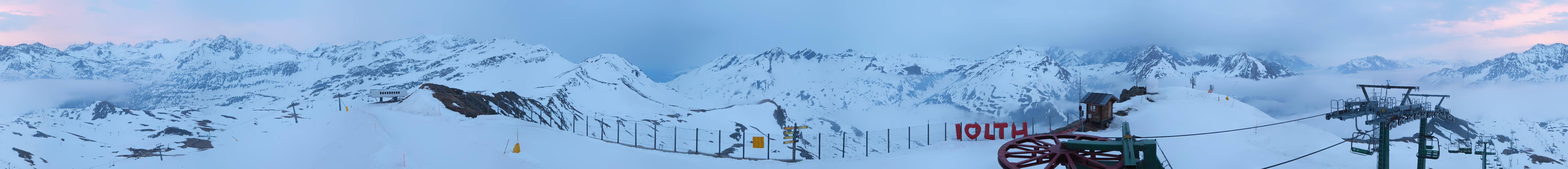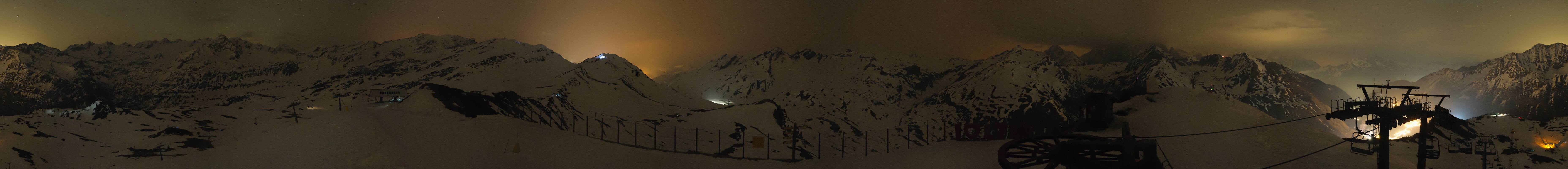 Aussicht von der Bergstation in La Thuile über das Skigebiet im Aostatal. Zudem erkennt man das Skigebiet von La Rosiere in Savoyen/Frankreich. Es ist verbunden mit La Thuile.