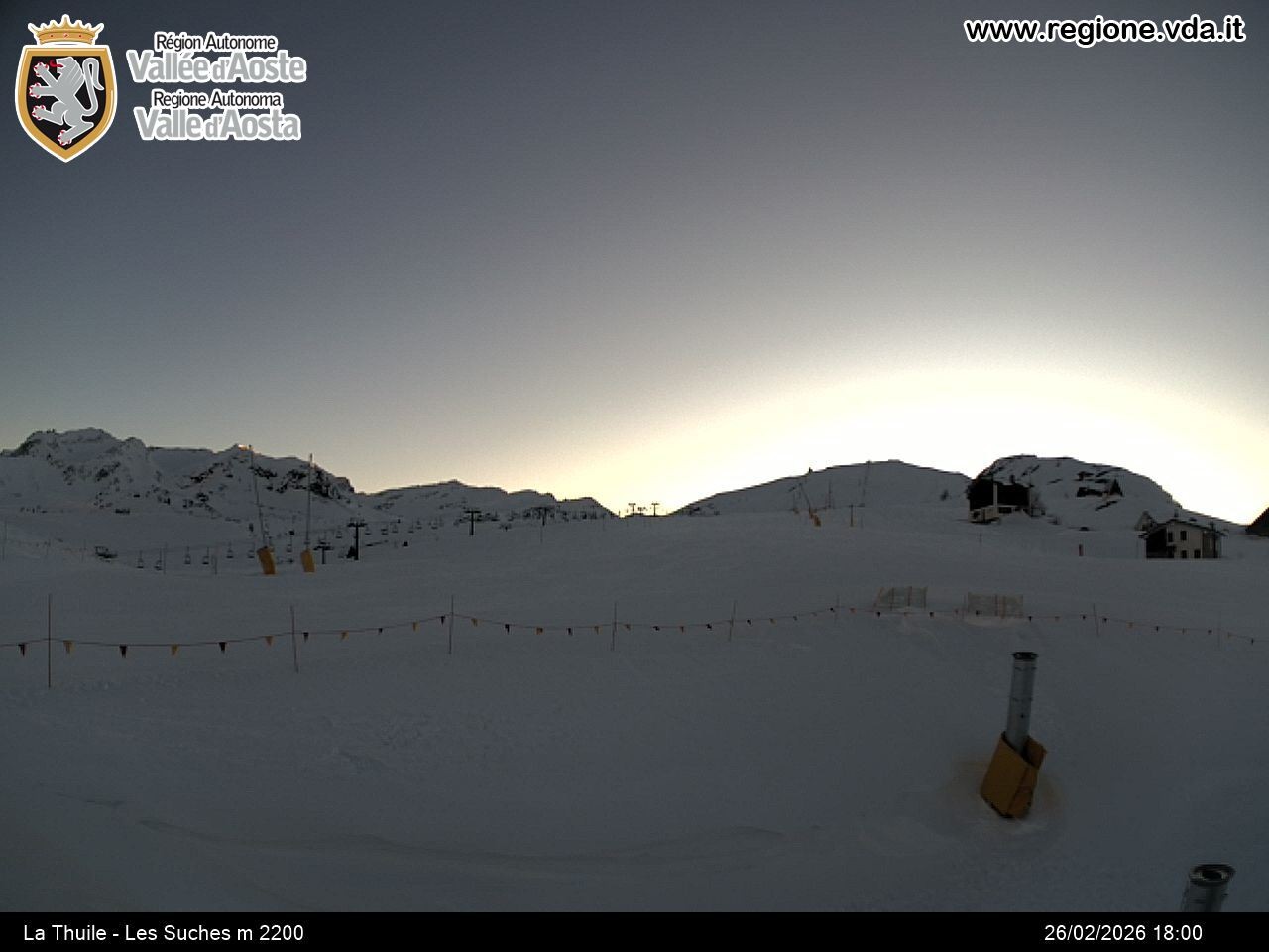 Archiviertes Webcam Bild: La Thuile - Les Suches am 26 Feb 2026 um 18:58 Uhr Aktuell