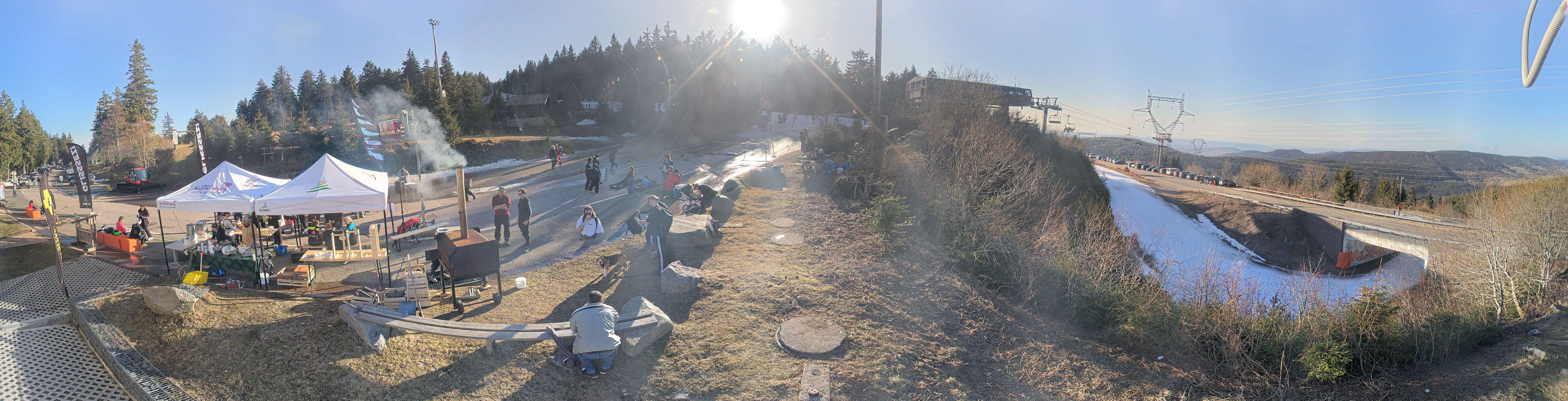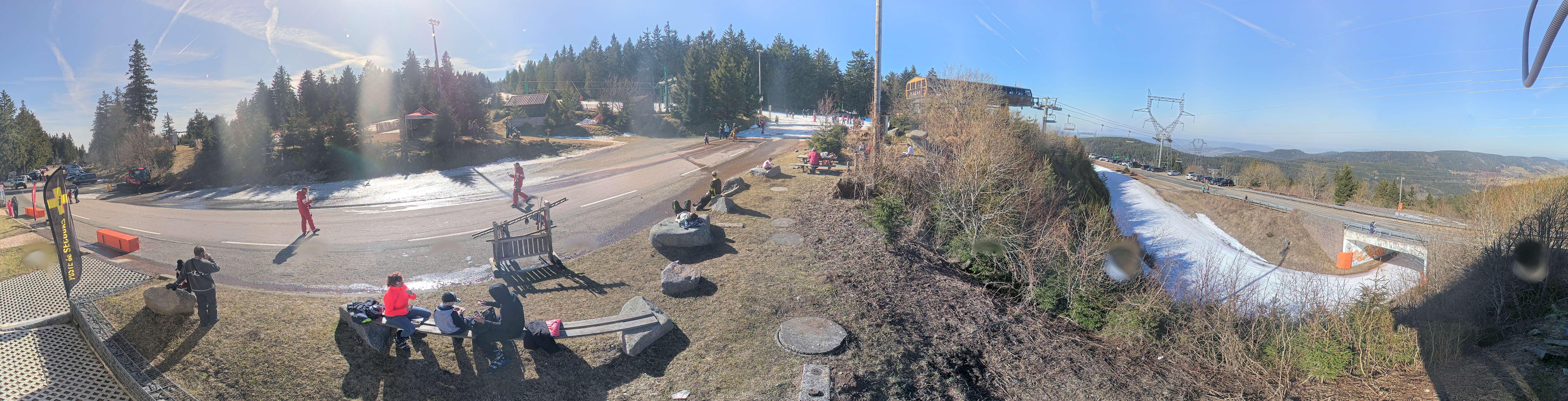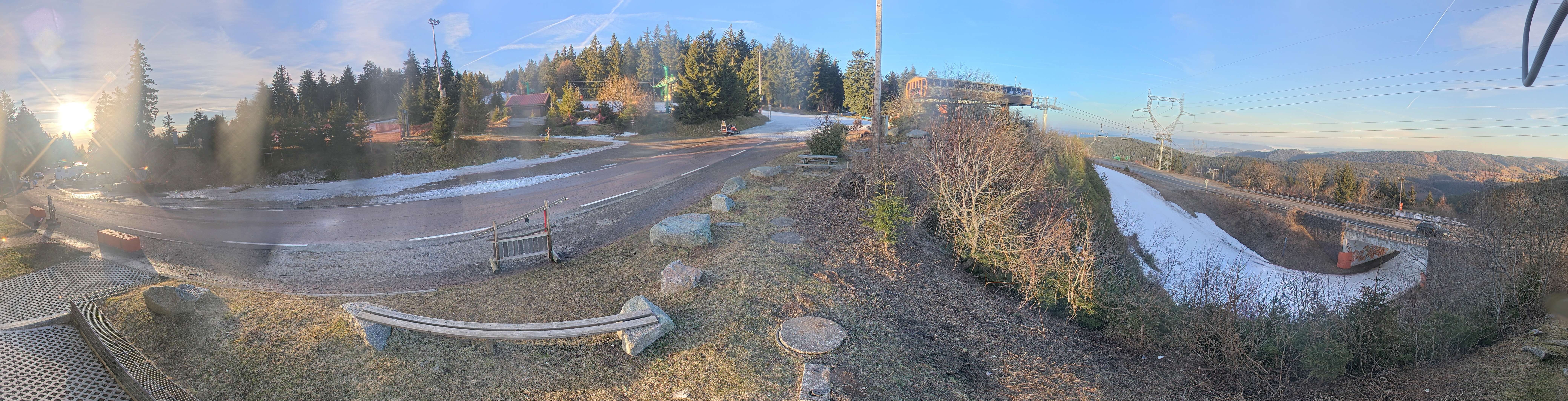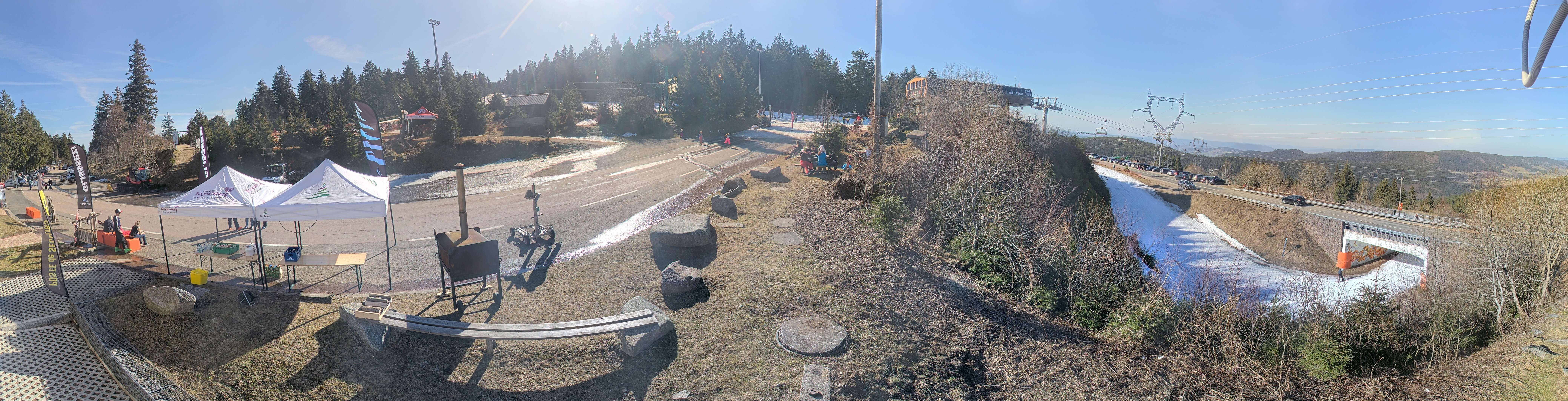 Die Kamera zeigt die Bergstation des Montjoie Sessellifts im Skigebiet Lac Blanc. Hier befindet sich auch der Übungsbereich für Anfänger.