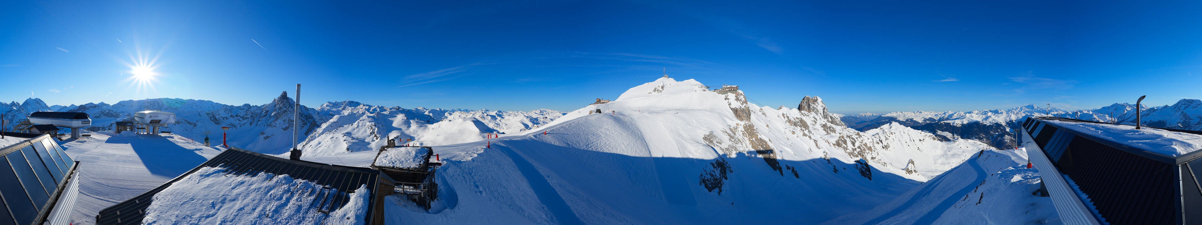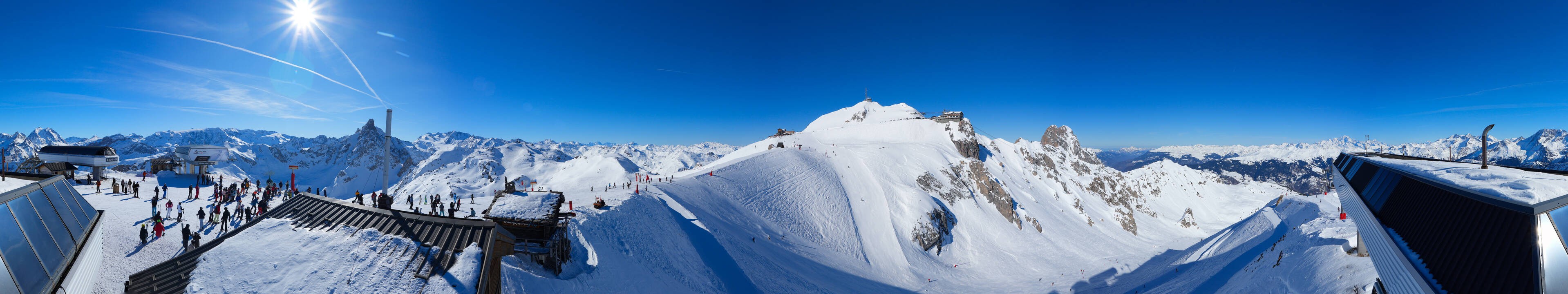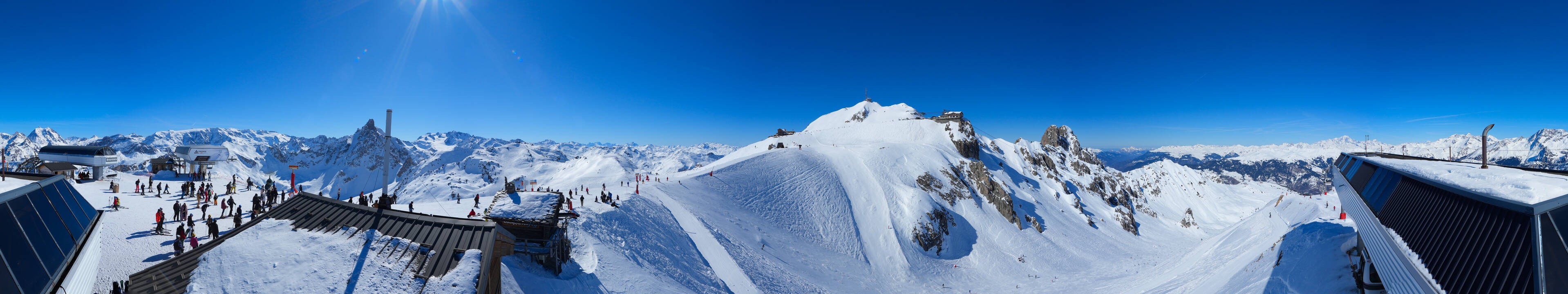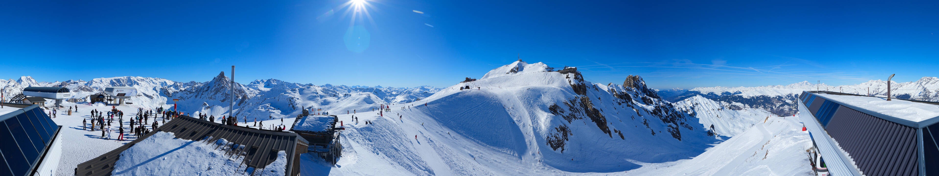 Auf einer Höhe von 2.700 Metern zeigt die Kamera einen Rundblick über das Skigebiet Courchevel.