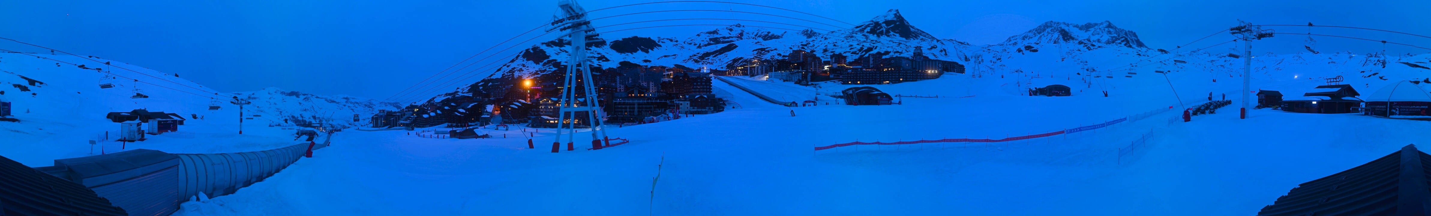 Archiviertes Webcam Bild: Les 3 Vallées - Talstation Val Thorens am 12.04.2026 um 04:58 Uhr 04:00