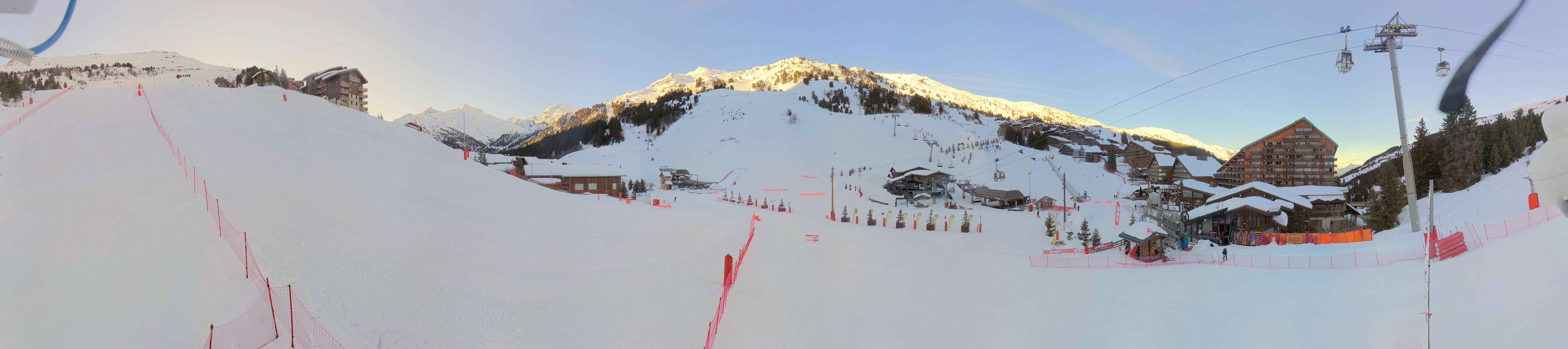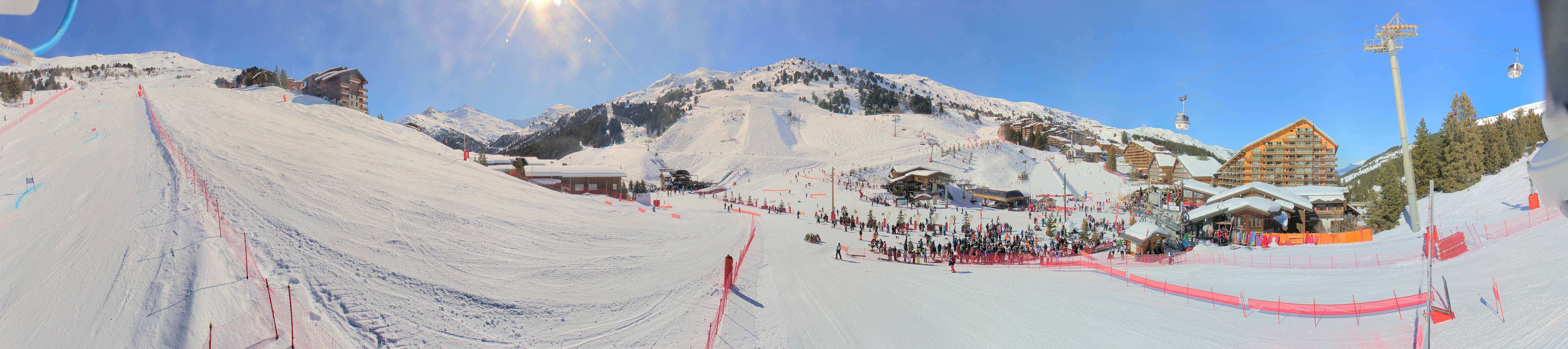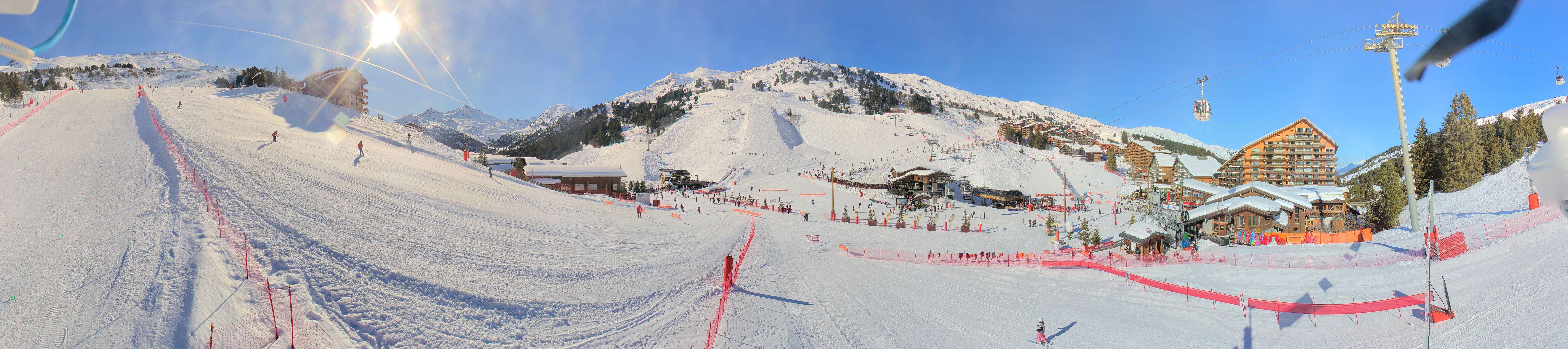 Panorama von Méribel-Mottaret: Blick auf den Talbereich, wo sich auch mehrere Übungslifte befinden.