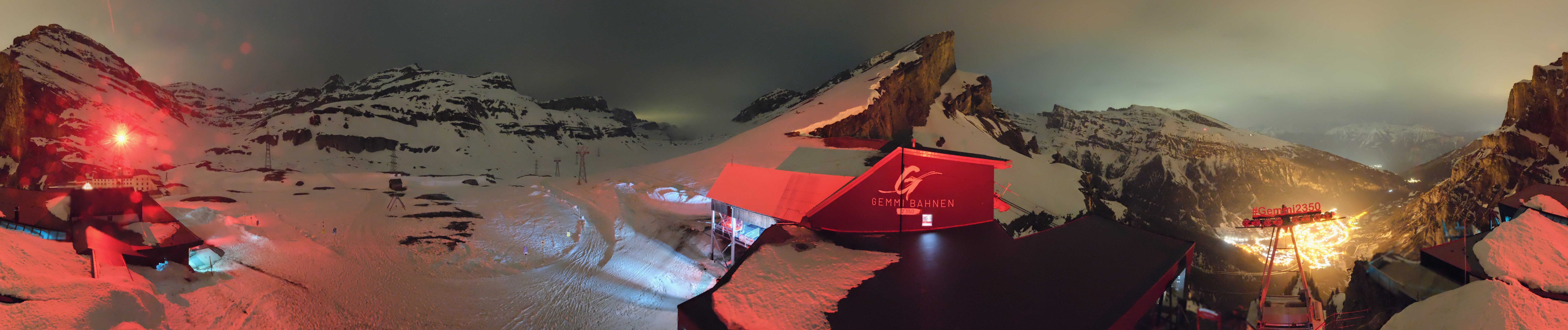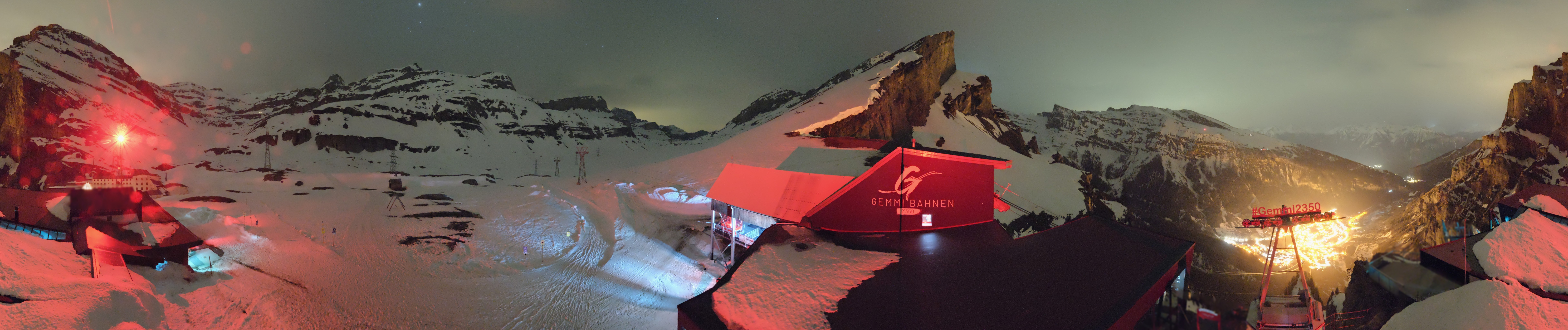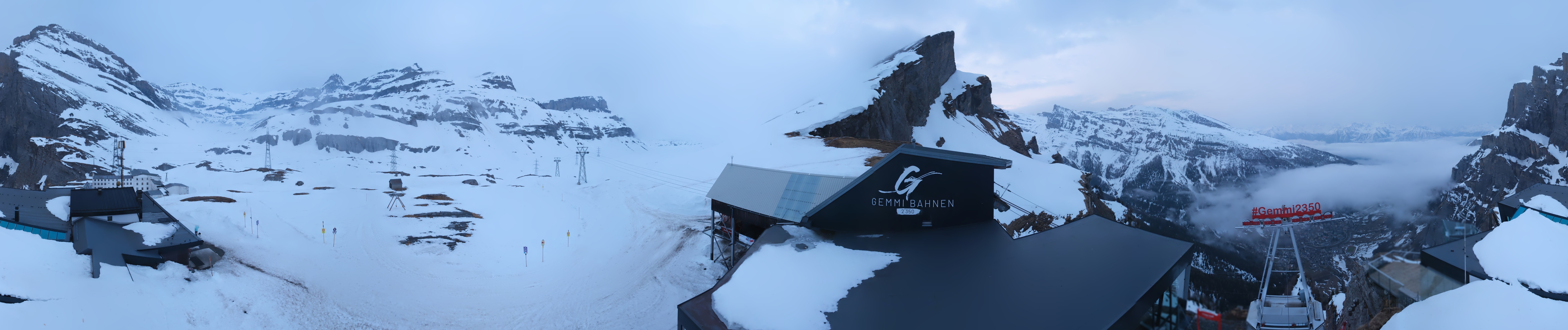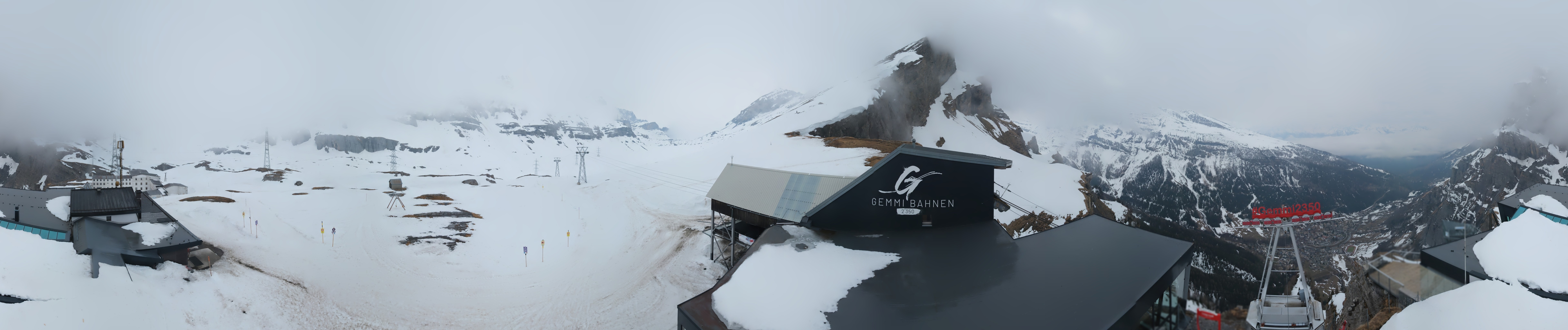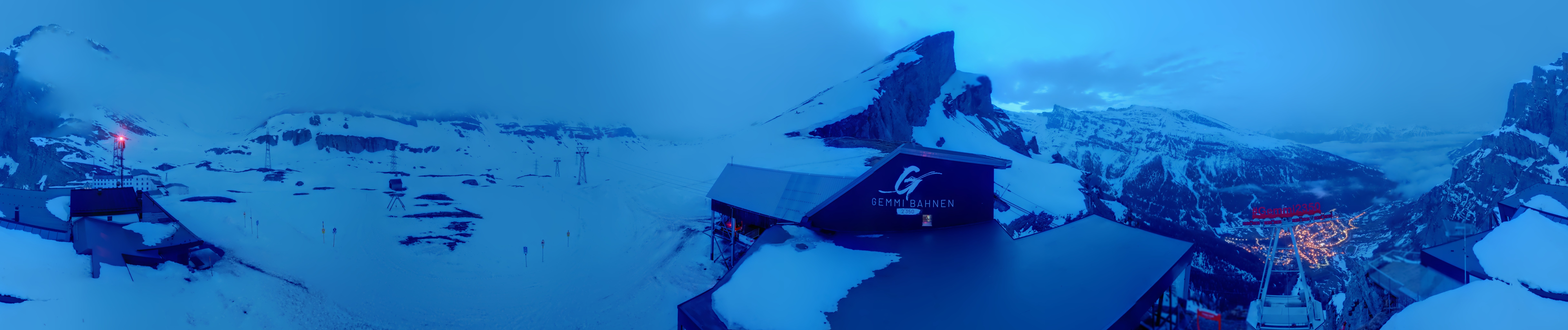 Die Roundshot-Cam befindet sich direkt am Berghotel Wildstrubel und bietet einen fantastischen 360-Grad-Blick auf das Skigebiet rund um den Gemmipass in der Schweiz.