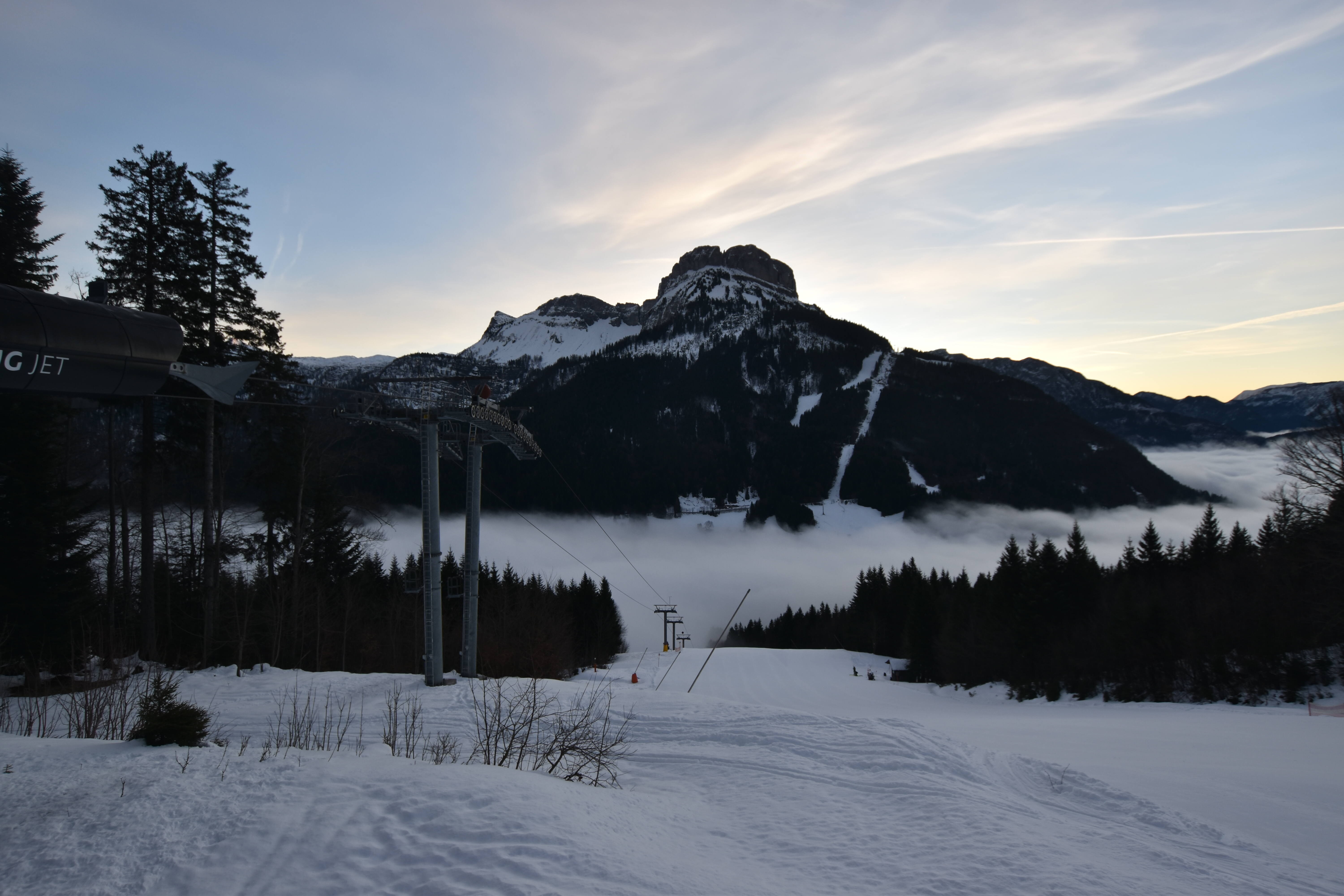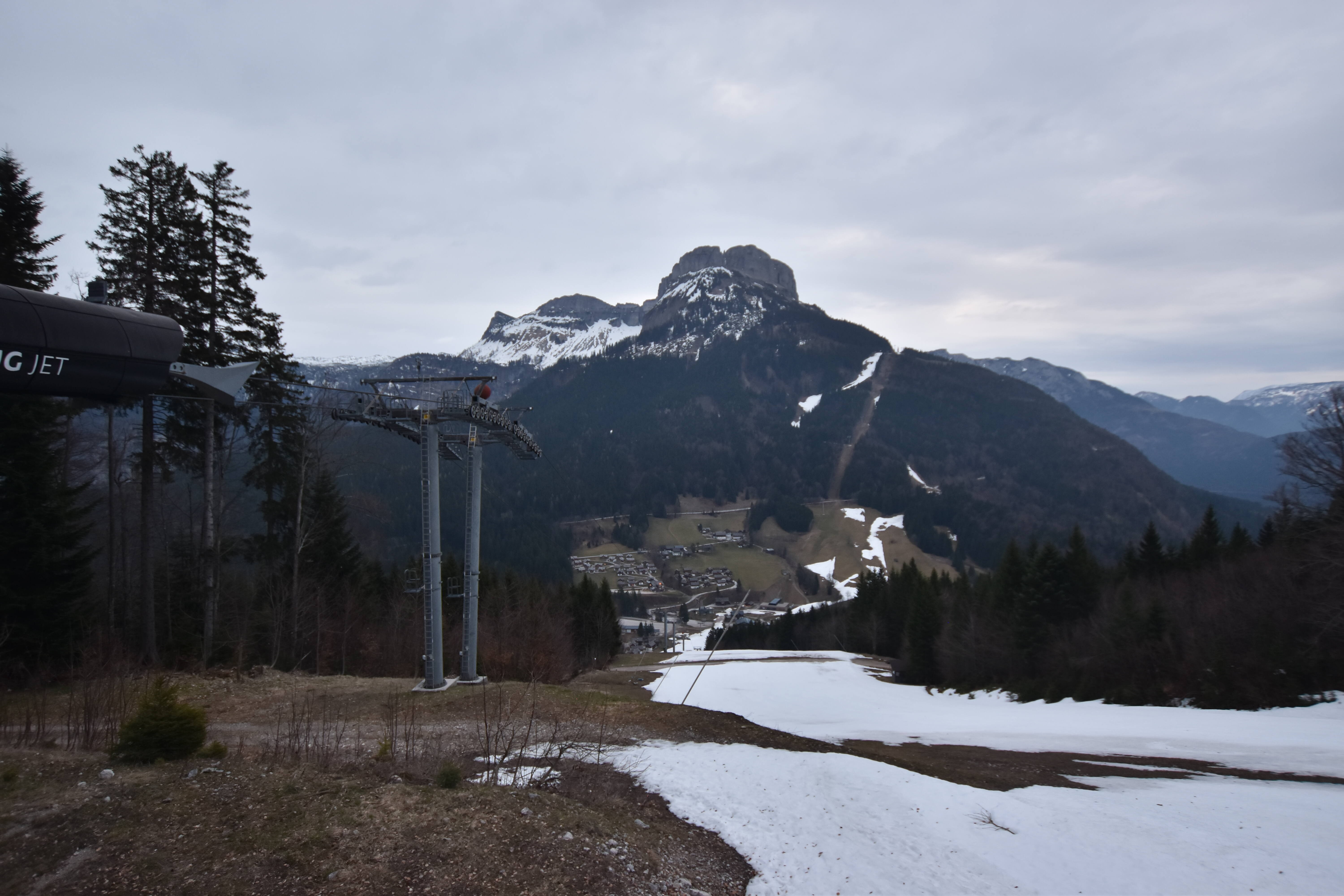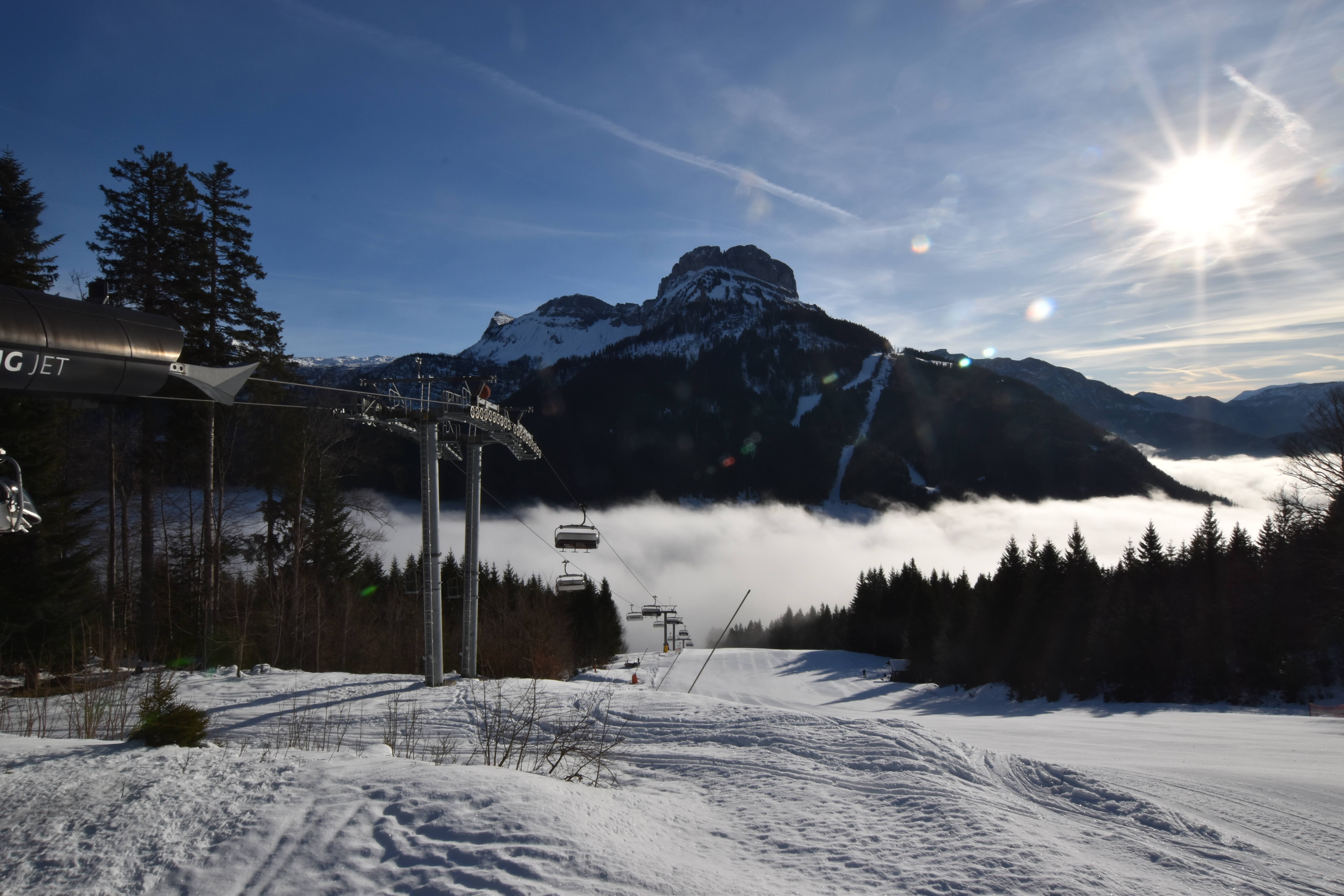 Die Kamera befindet sich an der Mittelstation des Sandling-Sessellifts und blickt nach Osten auf den Loser.