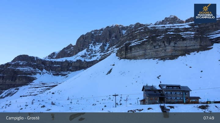 Archiviertes Webcam Bild: Madonna di Campiglio - Grostè Talstation am 26 Feb 2026 um 08:10 Uhr 07:00