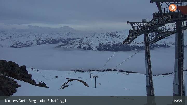 Archiviertes Webcam Bild: Klosters - Bergstation Schaffürggli am 12.04.2026 um 08:19 Uhr 08:00