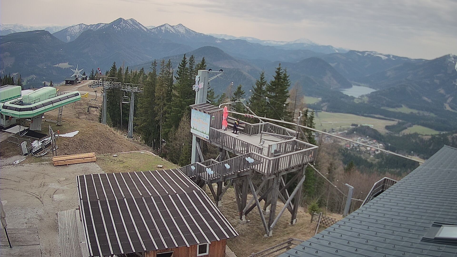 Blick vom Berggasthof zur Bergstation der Seilbahn Mariazeller Bürgeralpe
