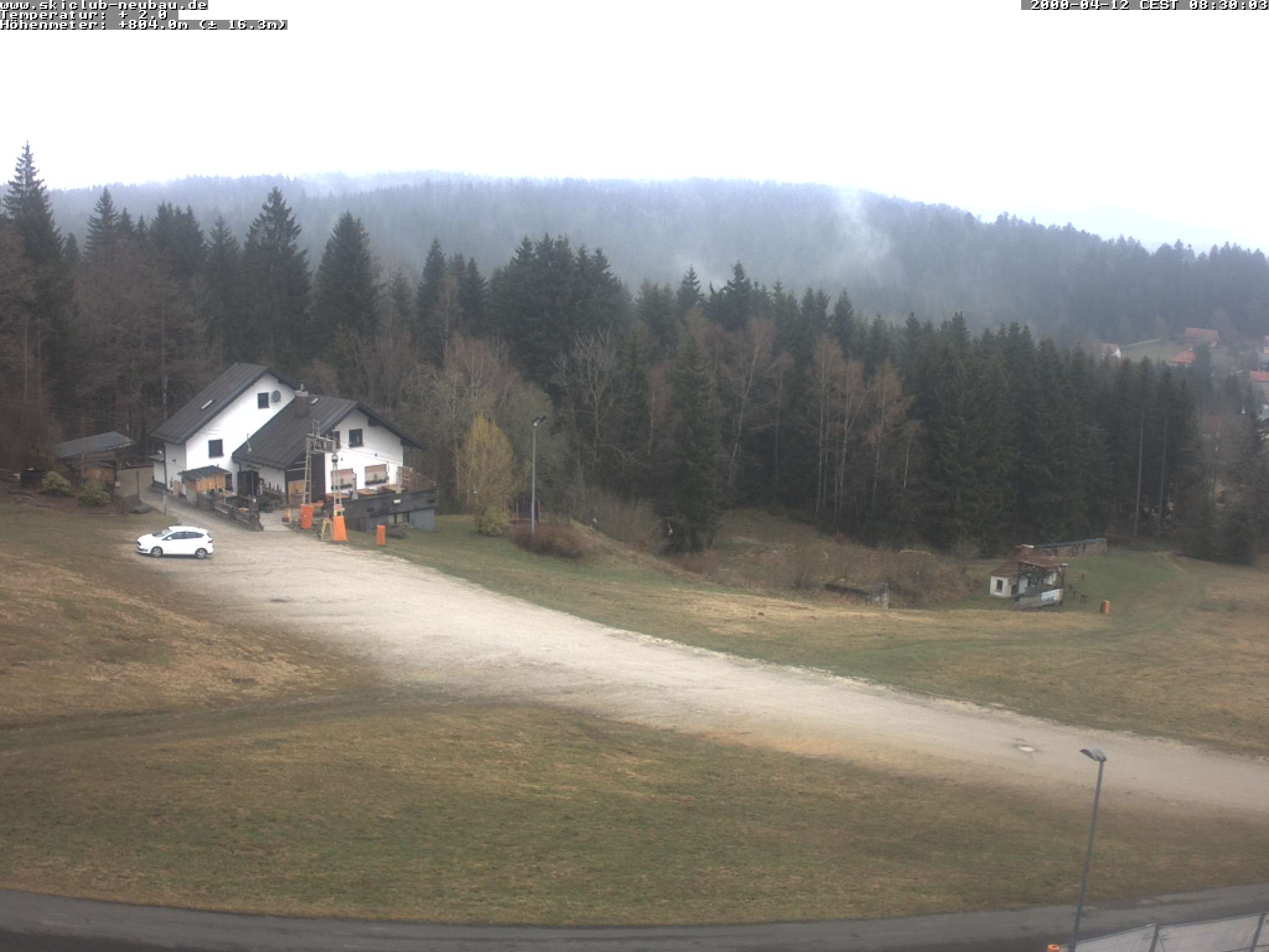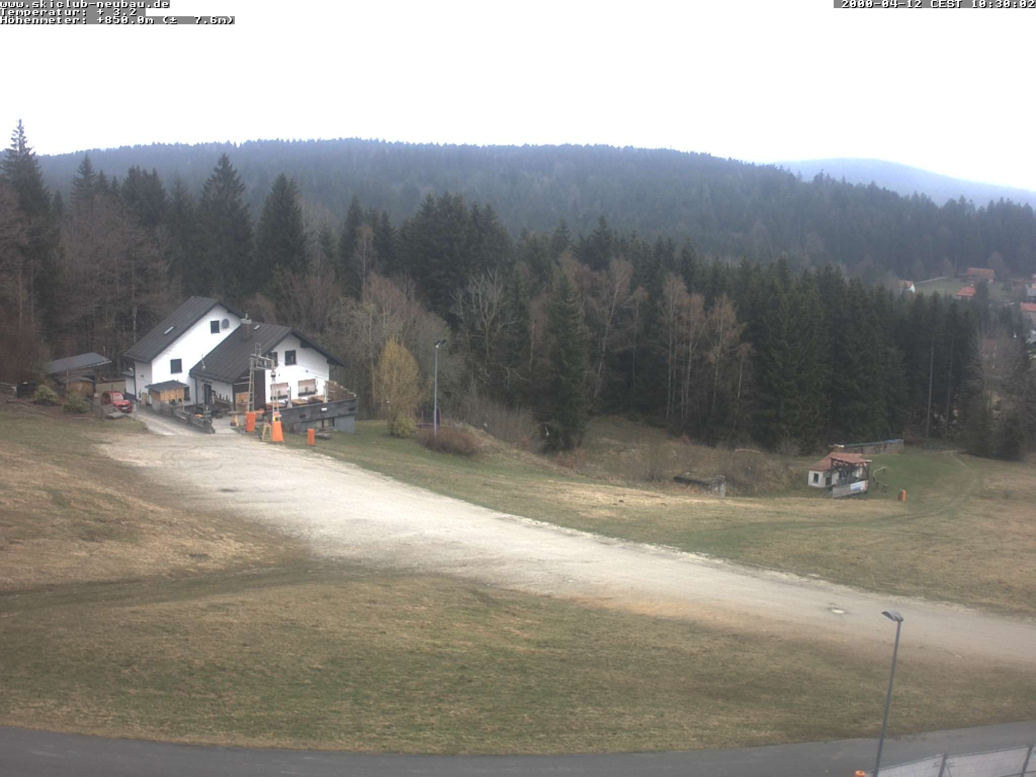 Blick auf das Wirtshaus Bleaml Alm, den Skilift und die Skipiste des Ski Clubs Neubau.