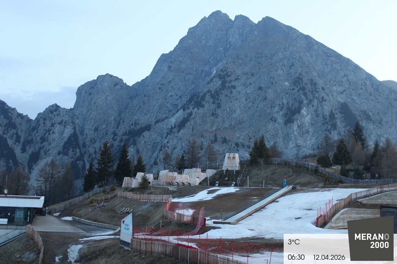 Archived webcam image showing Meran 2000 - View Outdoor Kids Camp on 12 Apr 2026 at 06:58 05:00