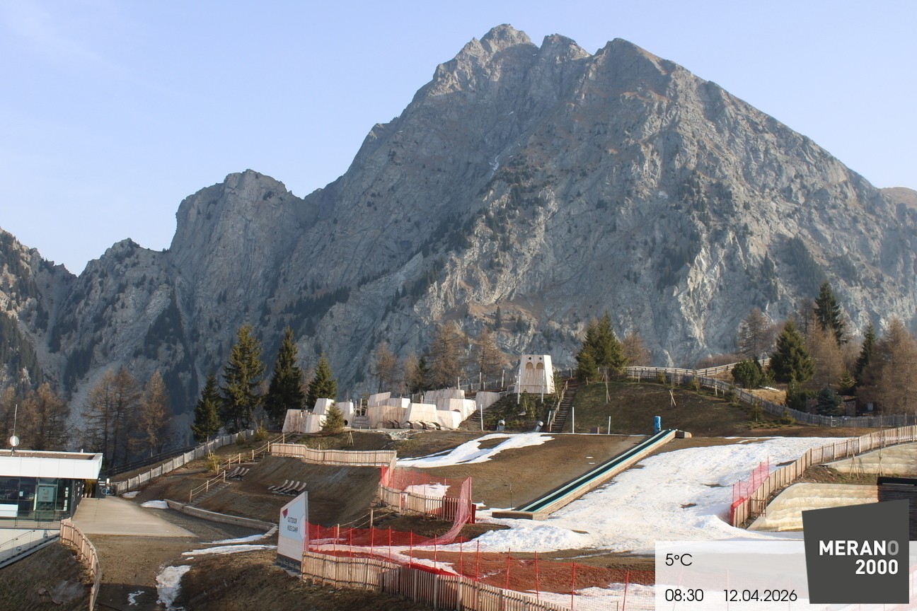 Archived webcam image showing Meran 2000 - View Outdoor Kids Camp on 12 Apr 2026 at 08:58 07:00
