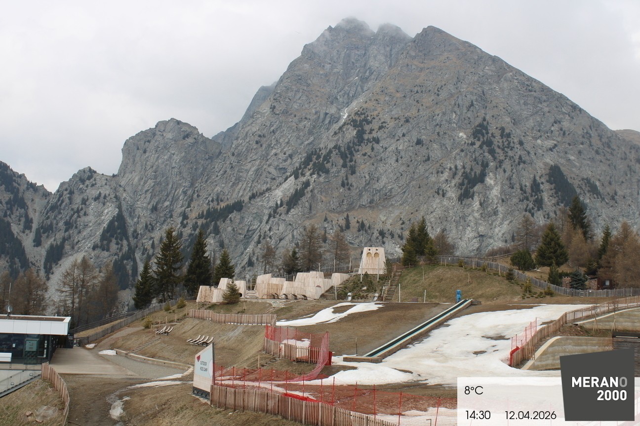 Archived webcam image showing Meran 2000 - View Outdoor Kids Camp on 12 Apr 2026 at 14:58 13:00