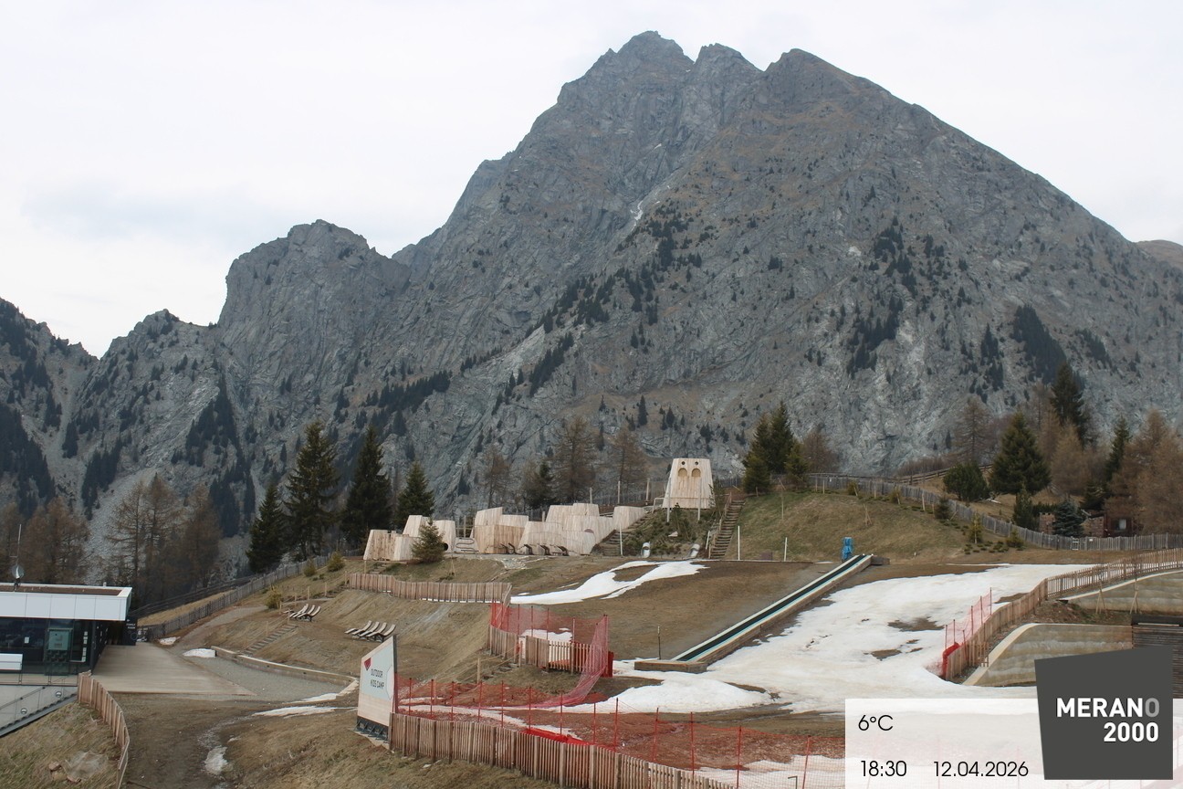 Archived webcam image showing Meran 2000 - View Outdoor Kids Camp on 12 Apr 2026 at 18:58 Aktuell