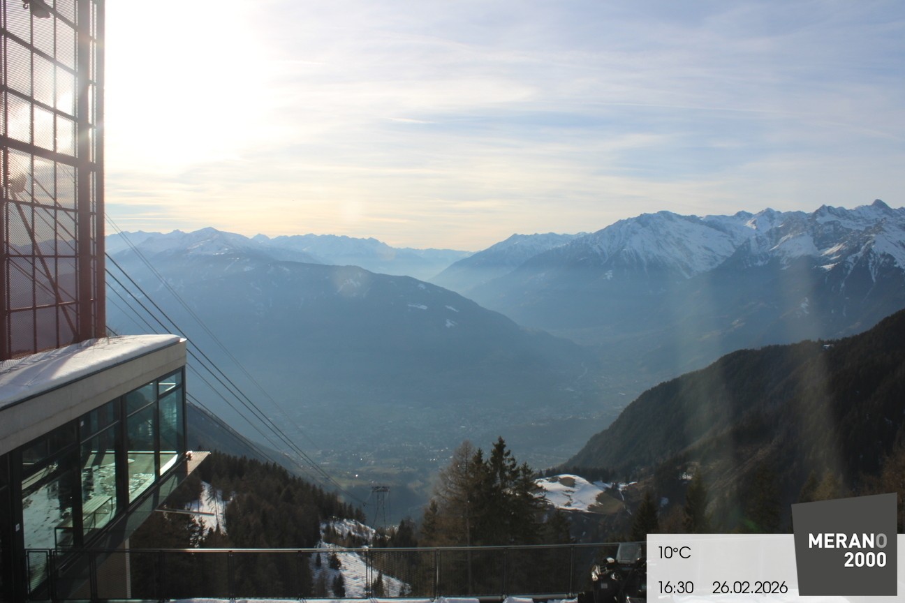 Archiviertes Webcam Bild: Meran 2000: Blick nach Meran am 26 Feb 2026 um 18:38 Uhr Aktuell