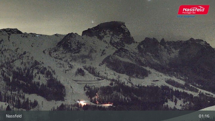 Archiviertes Webcam Bild: Nassfeld: Blick ins Skigebiet am 12.04.2026 um 01:09 Uhr 01:00