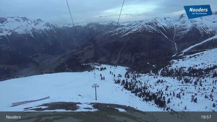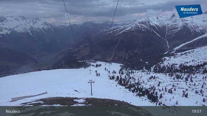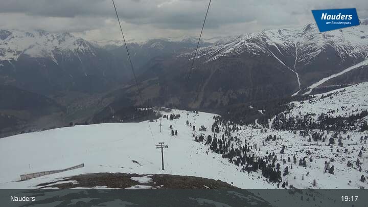 Archiviertes Webcam Bild: Bergstation Zirmbahn (Nauders) am 12.04.2026 um 19:18 Uhr 19:00