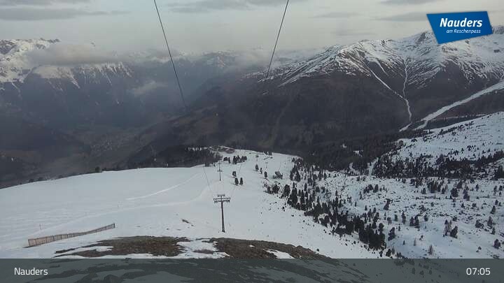 Archiviertes Webcam Bild: Bergstation Zirmbahn (Nauders) am 12.04.2026 um 07:18 Uhr 07:00