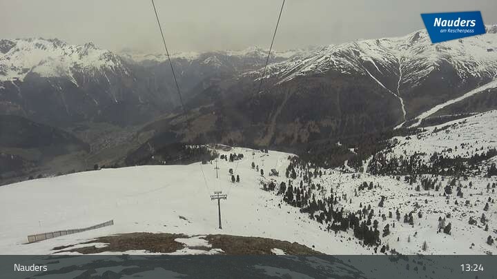Archiviertes Webcam Bild: Bergstation Zirmbahn (Nauders) am 12.04.2026 um 13:18 Uhr 13:00
