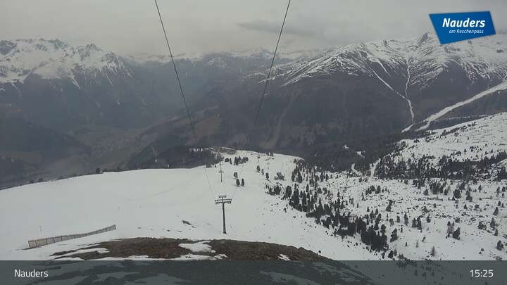 Archiviertes Webcam Bild: Bergstation Zirmbahn (Nauders) am 12.04.2026 um 15:18 Uhr 15:00