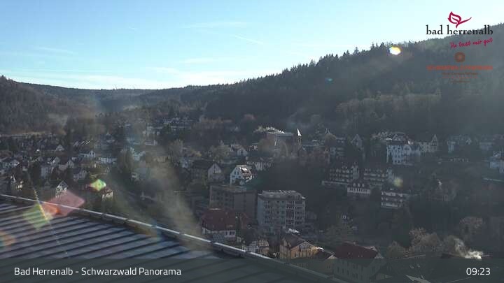 Die Webcam befindet sich am Dach des Hotels Schwarzwald Panorama, von wo aus sie die Ortschaft Bad Herrenalb überblickt.