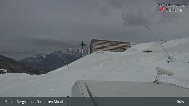 Archiviertes Webcam Bild: Obersaxen Mundaun: Untermatt Bergstation am 12.04.2026 um 19:05 Uhr Aktuell