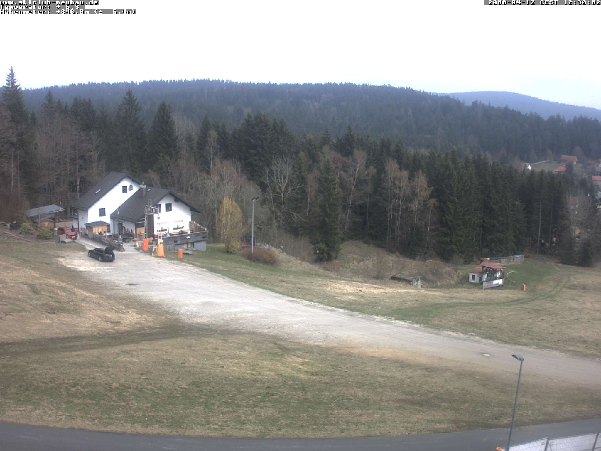 Blick auf das Wirtshaus Bleaml Alm, den Skilift und die Skipiste des Ski Clubs Neubau.