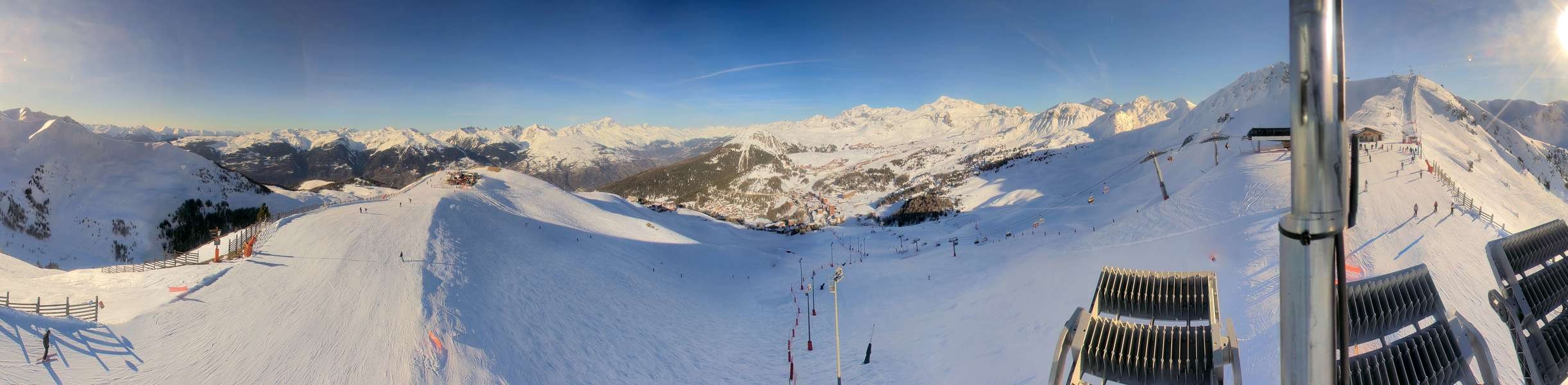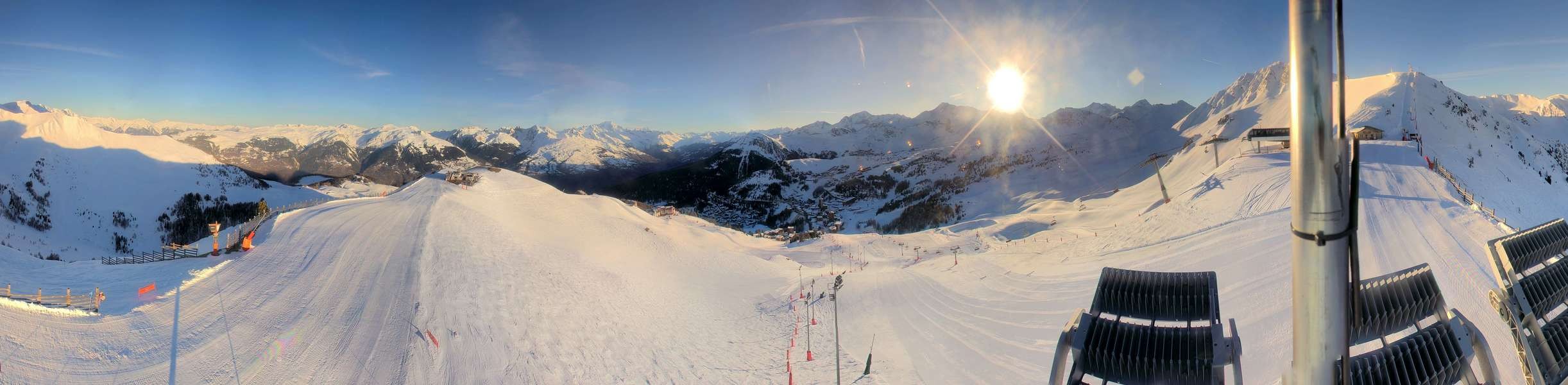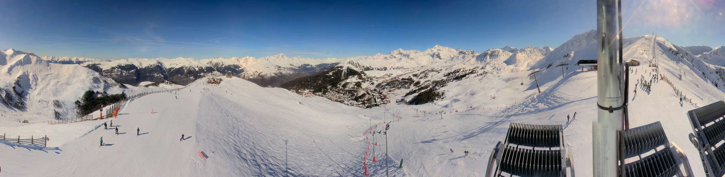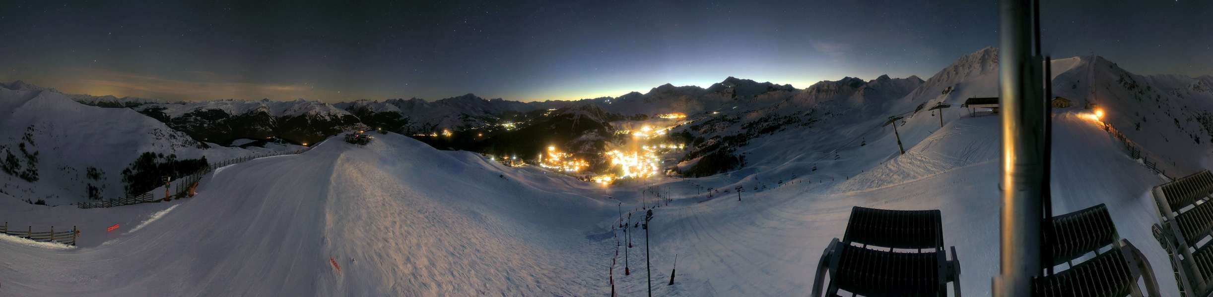 Diese Webcam zeigt die Bergstation Bécoin im französischen Skigebiet La Plagne und das umliegende Panorama.