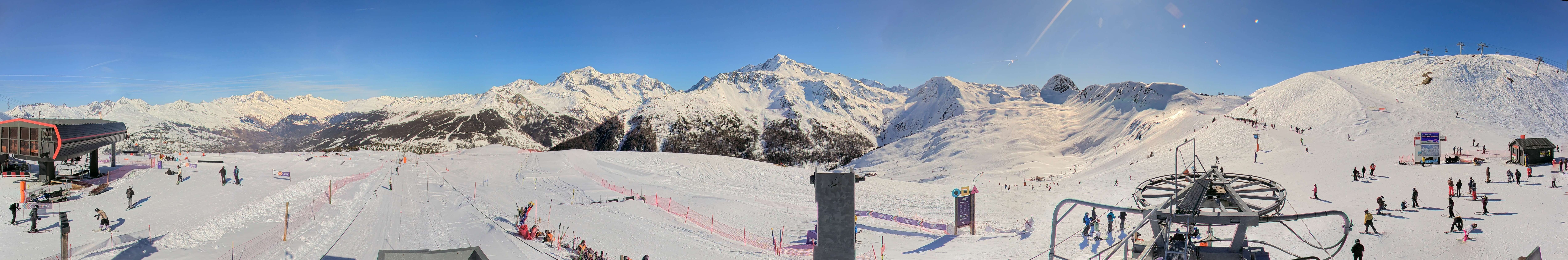 Diese Webcam zeigt die Bergstation des Sessellifts La Bijolin im französischen Skigebiet La Plagne.