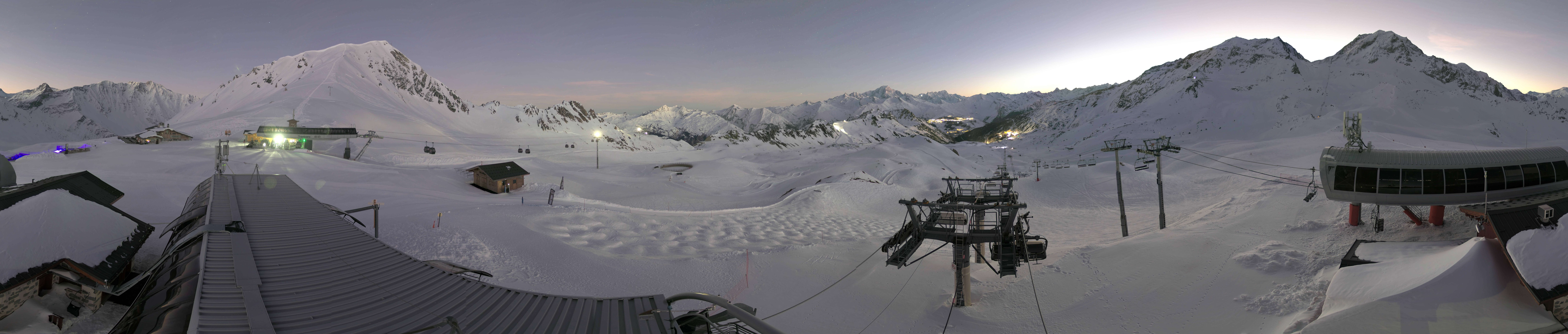 Archiviertes Webcam Bild: Les Arcs - Bergstation Sessellift Arcabulle am 26 Feb 2026 um 04:03 Uhr 03:00