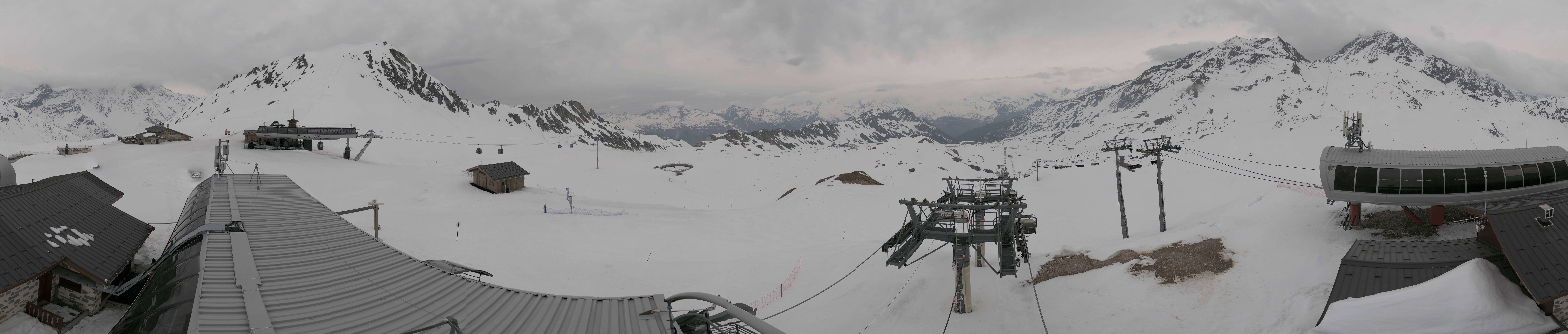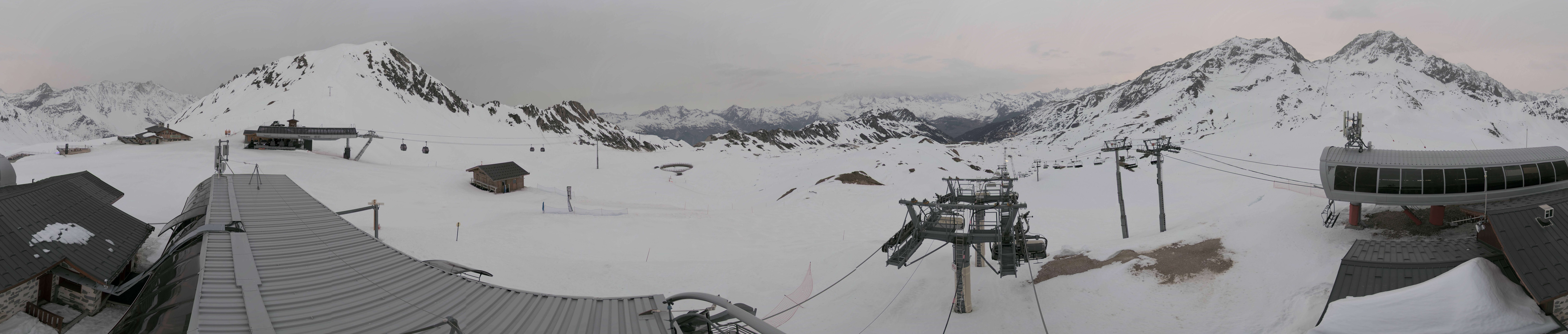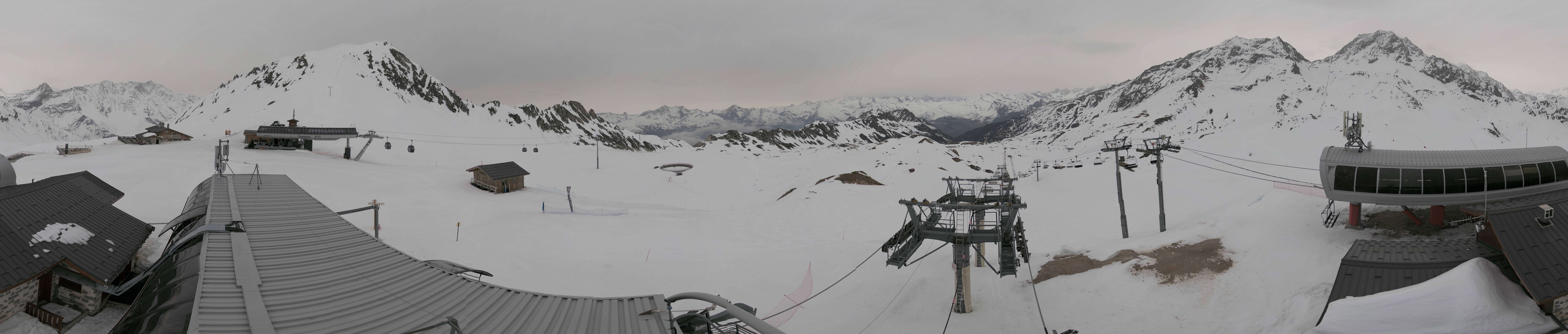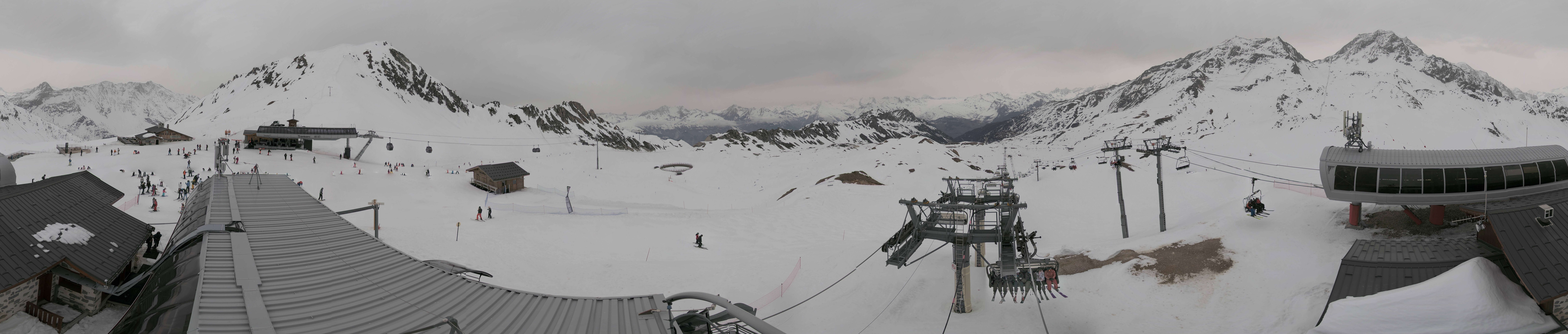 Archiviertes Webcam Bild: Les Arcs - Bergstation Sessellift Arcabulle am 12.04.2026 um 08:57 Uhr 08:00
