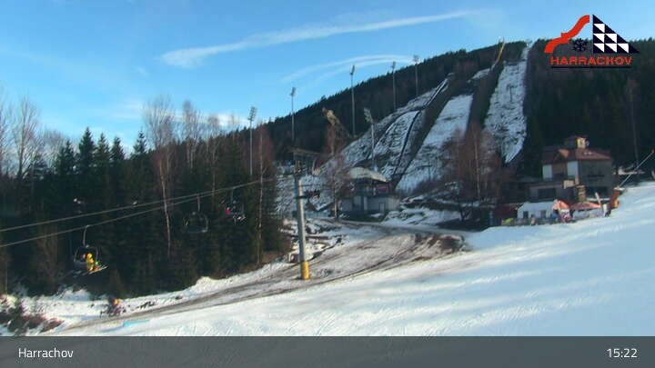 Archiviertes Webcam Bild: Harrachov: Skipiste und Skisprunganlage am Teufelsberg am 26 Feb 2026 um 15:09 Uhr Aktuell
