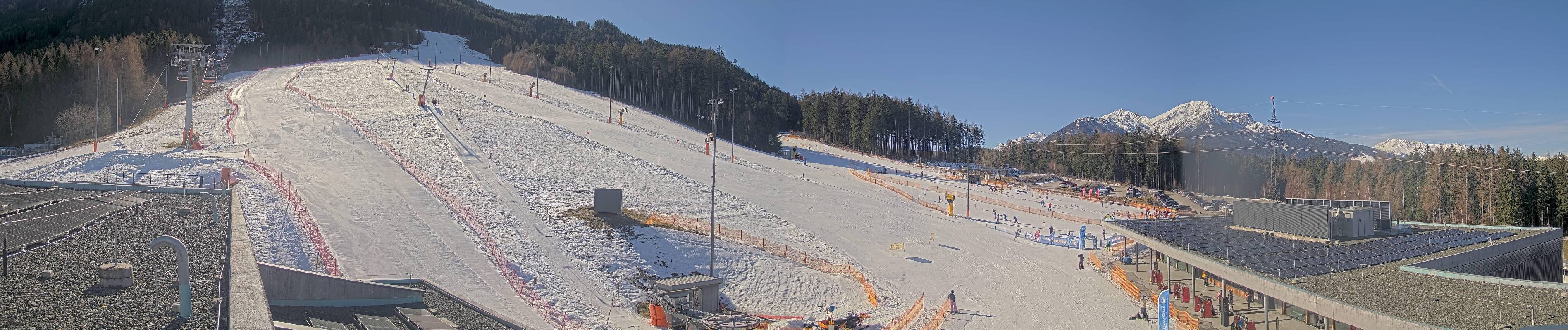Die Webcam befindet sich an der Talstation des Skigebiets am Patscherkofel und blickt Richtung Bergstation. Der Patscherkofel ist ein beliebtes Skigebiet im Süden von Innsbruck.