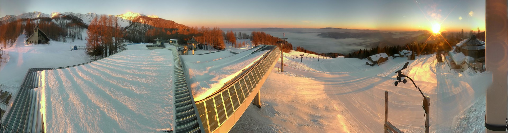 Archived webcam image showing Petzen Panoramic View on Feb 26, 2026 at 6:14 AM 00:00