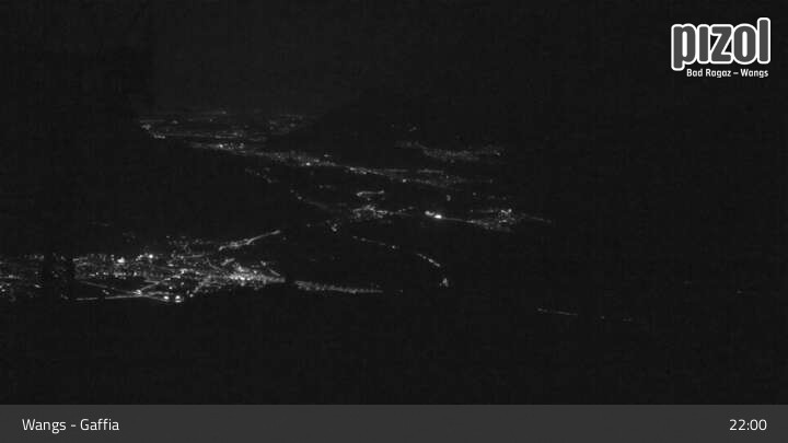 Blick von der Bergstation Gaffia ins Tal. Die Webcam befindet sich im Schweizer Skigebiet Pizol.