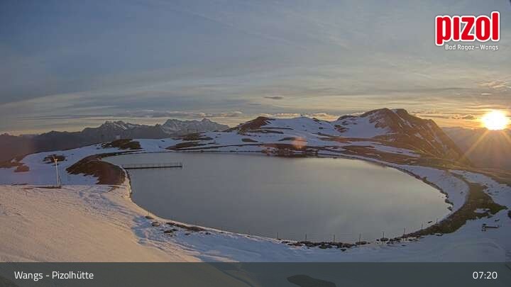 Assicht vom Laufböden in Richtung Gaffia-Pizolhütte im Skigebiet Pizol