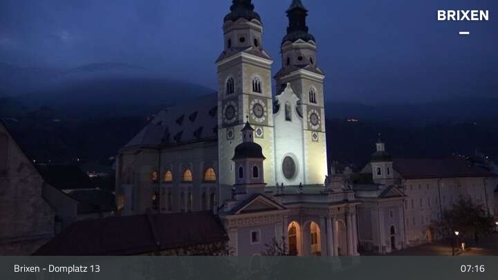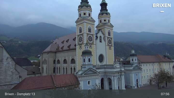 Zu sehen ist der Dom und der Domplatz im Zentrum der Stadt Brixen in Südtirol.