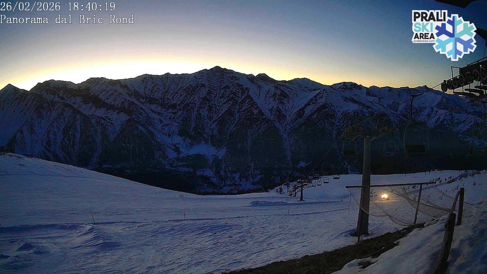 Archiviertes Webcam Bild: Skigebiet Prali - Bric Rond (2540 m) am 26 Feb 2026 um 18:07 Uhr Aktuell