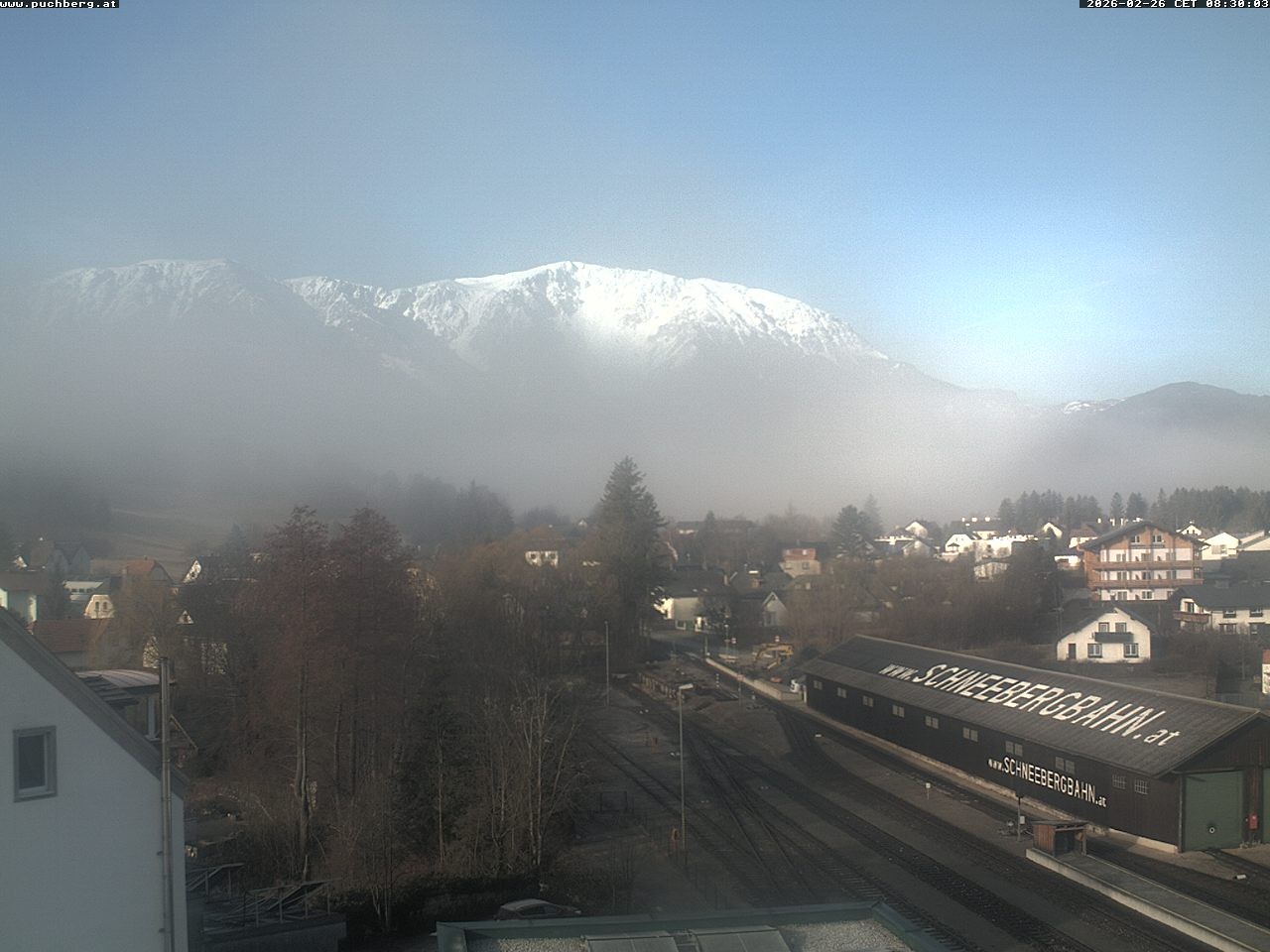 Archiviertes Webcam Bild: Bahnhof Puchberg - Schneebergblick am 26 Feb 2026 um 08:31 Uhr 07:00