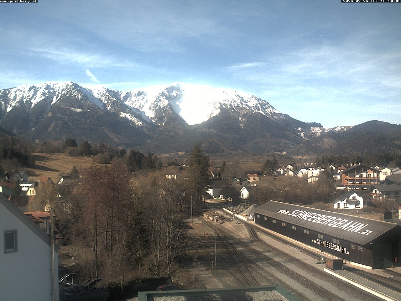 Archiviertes Webcam Bild: Bahnhof Puchberg - Schneebergblick am 26 Feb 2026 um 10:31 Uhr 09:00