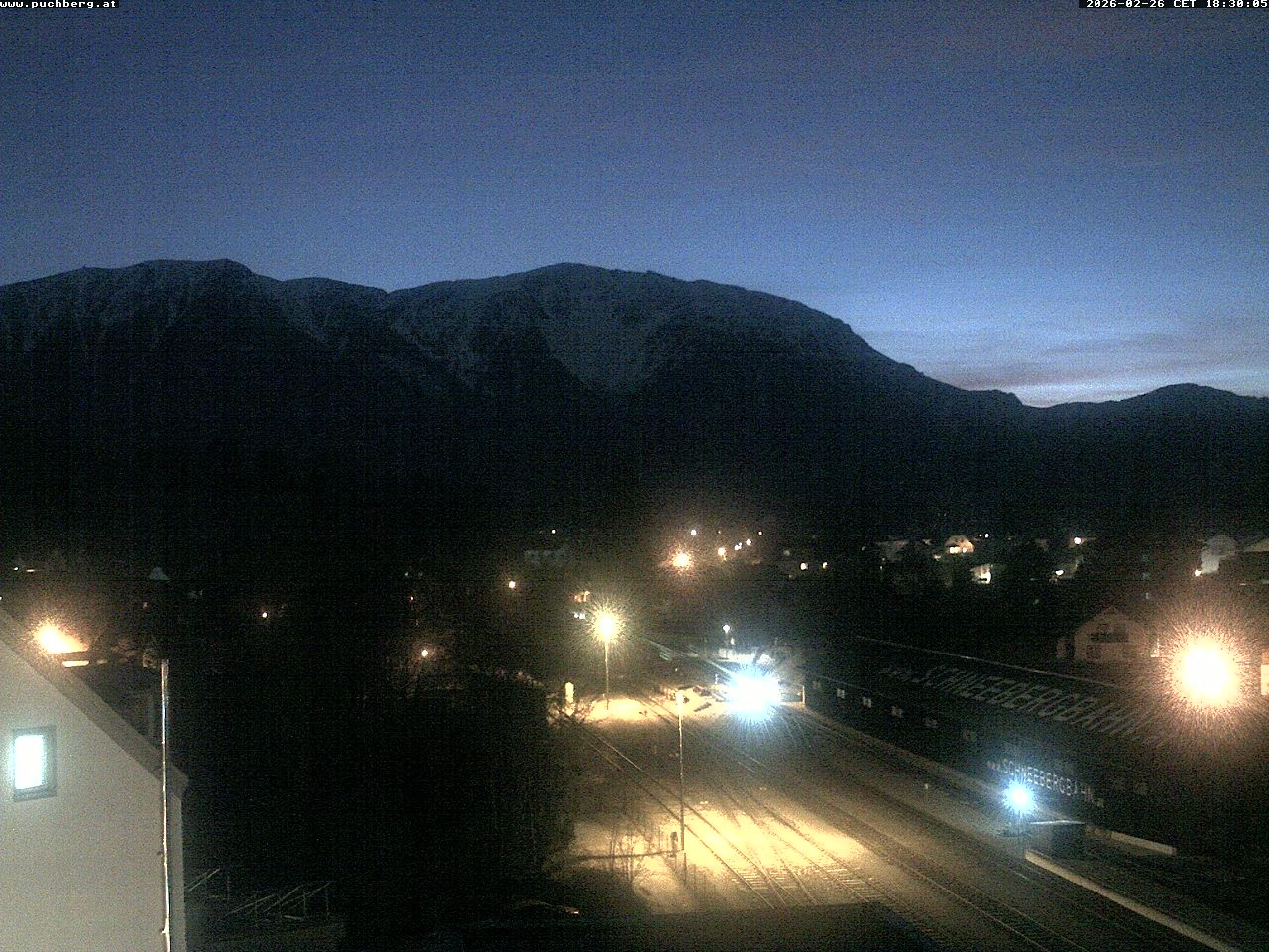 Archiviertes Webcam Bild: Bahnhof Puchberg - Schneebergblick am 26 Feb 2026 um 20:31 Uhr Aktuell