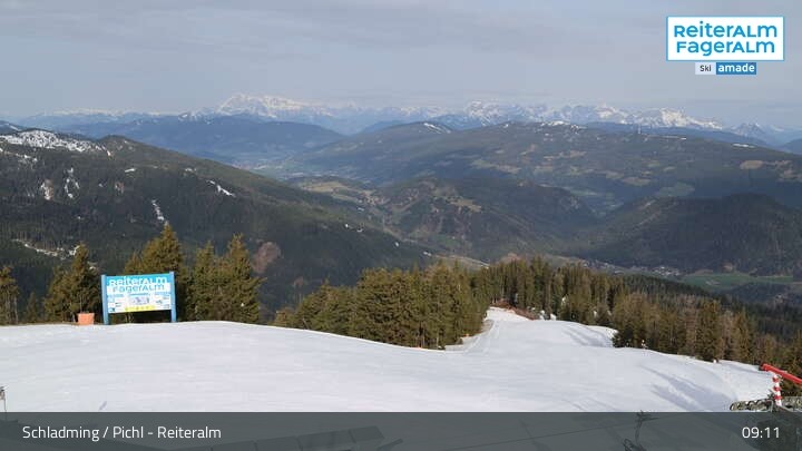 Archiviertes Webcam Bild: Reiteralm: Bergstation 6er-Sesselbahn Gasselhöhe am 12.04.2026 um 09:08 Uhr 09:00