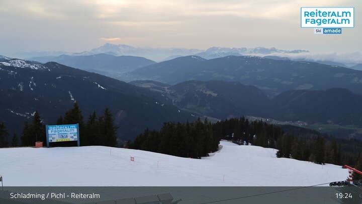 Archiviertes Webcam Bild: Reiteralm: Bergstation 6er-Sesselbahn Gasselhöhe am 12.04.2026 um 19:08 Uhr Aktuell