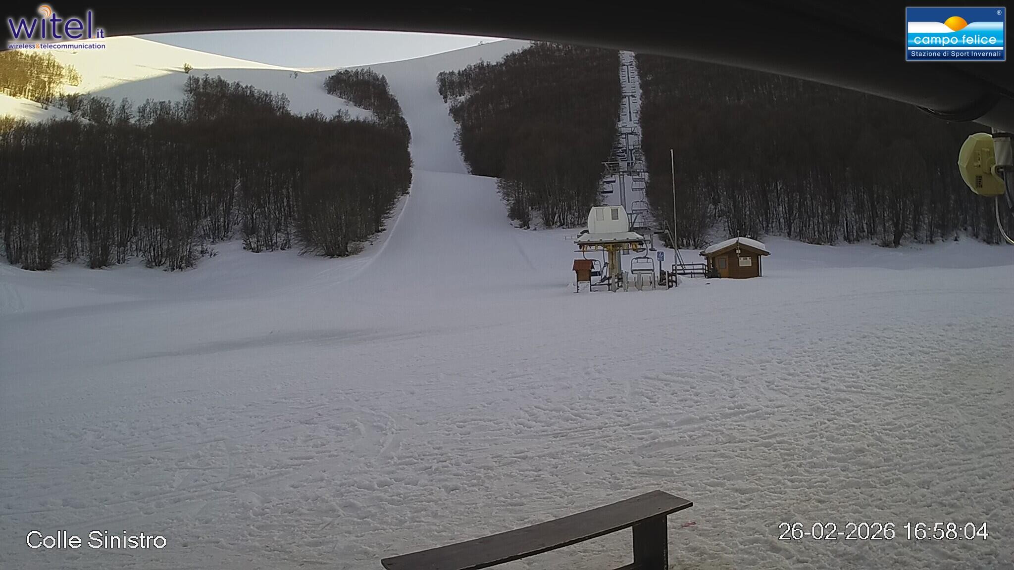 Archiviertes Webcam Bild: Campo Felice - Talstation Sessellift Colle Destro und Piste Giovanni Paolo II (Italien) am 26 Feb 2026 um 18:08 Uhr Aktuell
