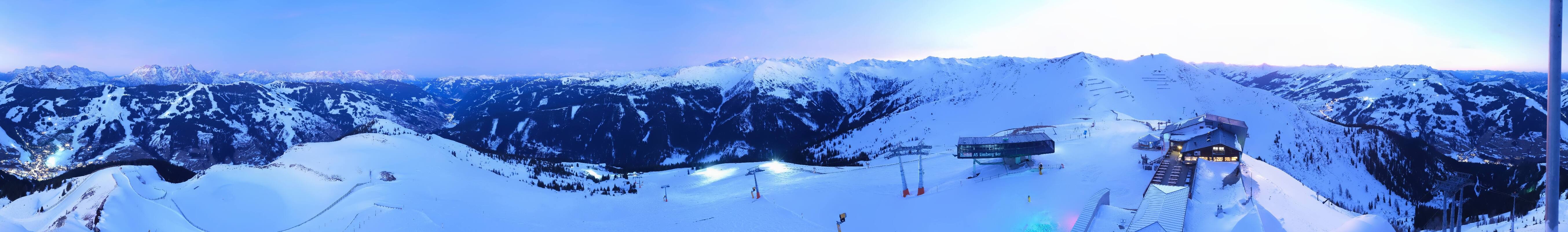 Webcam auf der Bergstation des Schattberg X-press II (2.010m) mit einem herrlichen 360-Grad-Blick über die Limberg-Abfahrt, Sky Rest und ins Tal nach Saalbach.