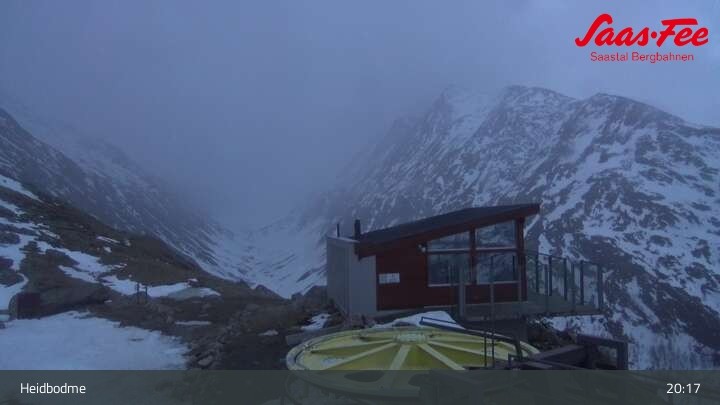 Die Webcam befindet sich an der Bergstation des Sessellifts Heidbodme und damit am höchsten Punkt des Skigebiets Saas-Almagell.