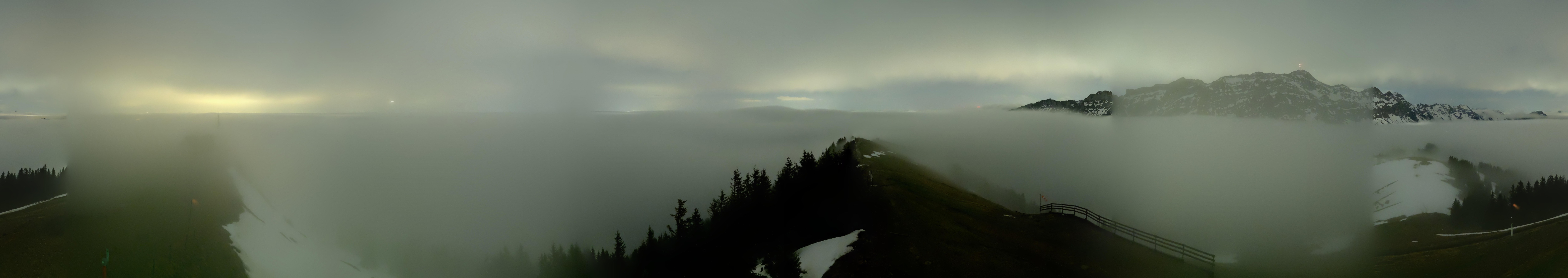 Traumhafter Panoramablick vom Gipfel des Kronbergs im Appenzellerland. Auf den Familien- und Freizeitberg führt eine Luftseilbahn. Im Winter kann man hier den längsten Schlittelweg der Ostschweiz erleben, während im Sommer Wanderungen sehr beliebt sind. Im Tal befindet sich zudem ein Zipline-Park, eine Märliwelt und eine Bobbahn.