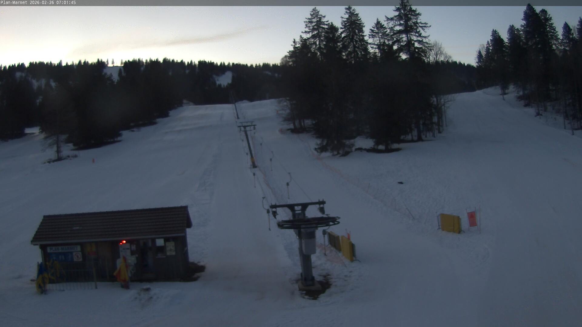 Archived webcam image showing Les Bugnenets Savagnieres valley station on Feb 26, 2026 at 7:25 AM 01:00
